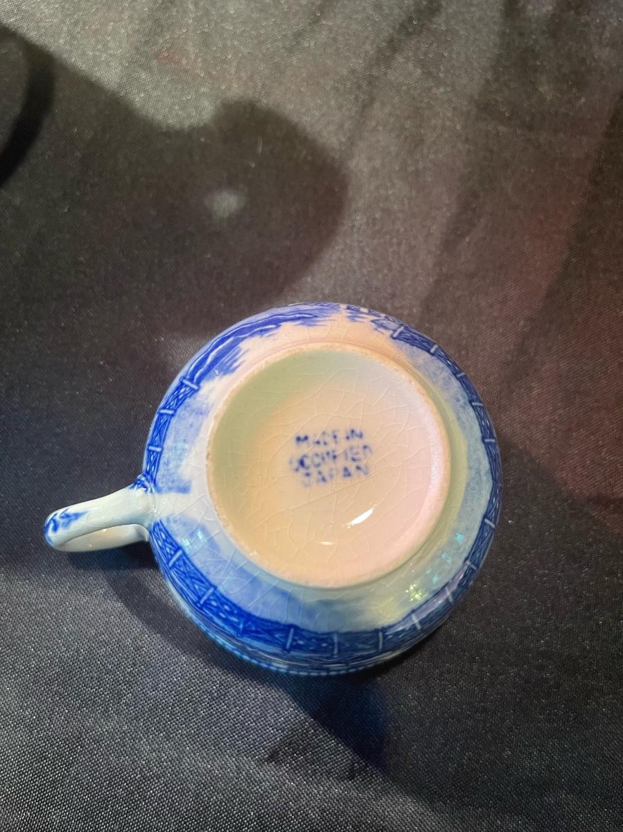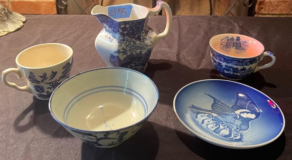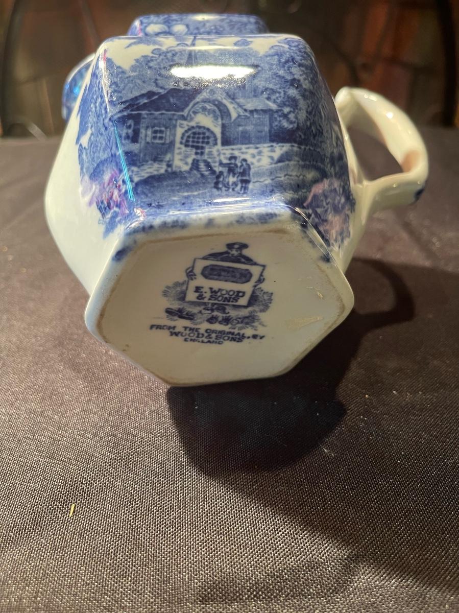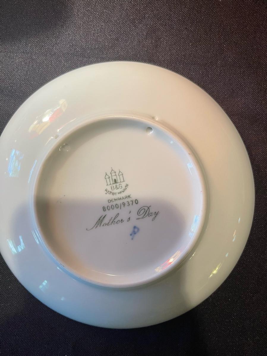 pitcher marked "E. Wood and sons England", teacup "Japan", teacup "England Mors Dag 1970", plate "B&G Denmark 8000/9370 mothers day", bowl not written in English.