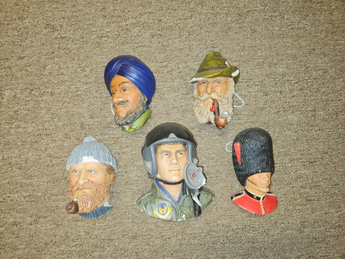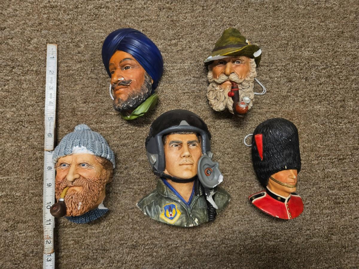 Lot of 5 Bossons and Bosson-Style Hanging Bust Plaques - As is