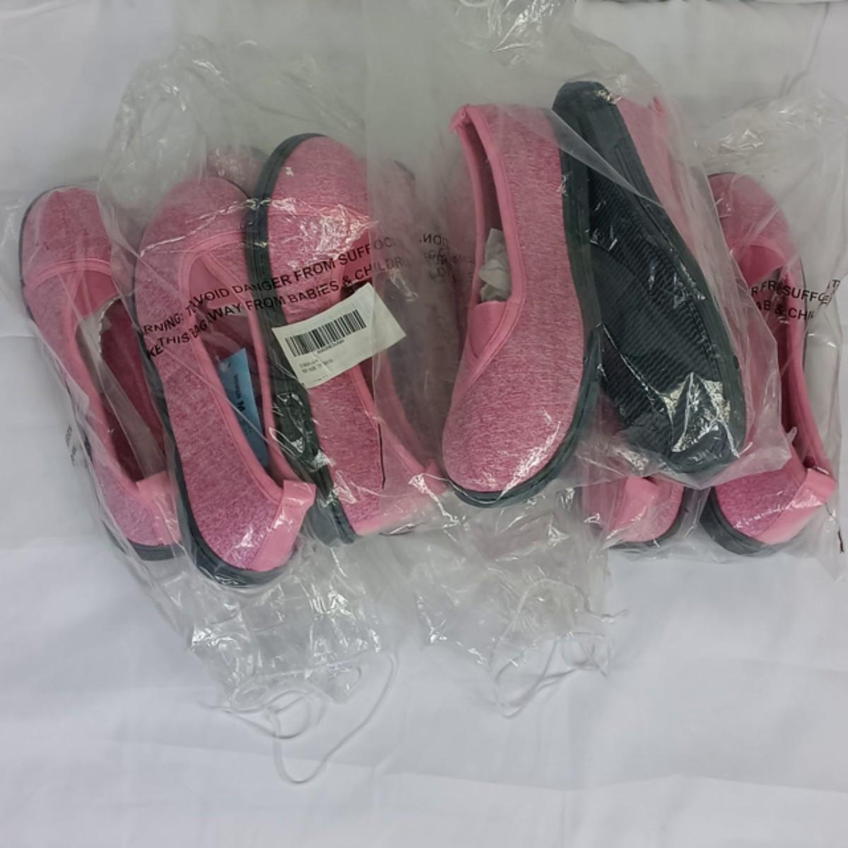 These are brand new, with tags. This lot of shoes is a size medium (women's size 7 -8).