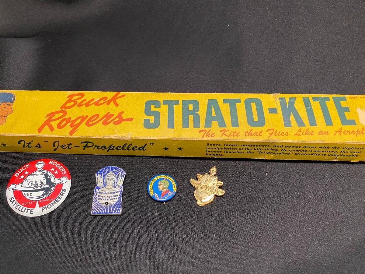 Lot of 5 Buck Rogers Strato Kite in Box Buttons and Pins