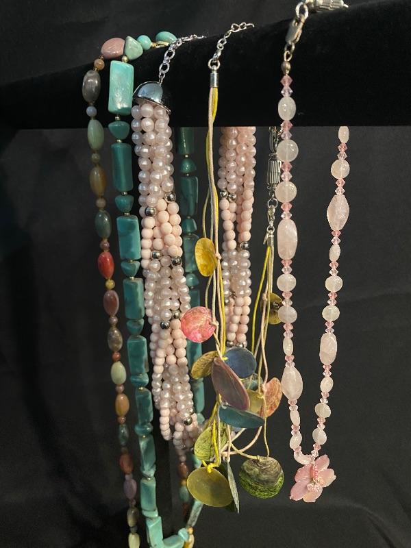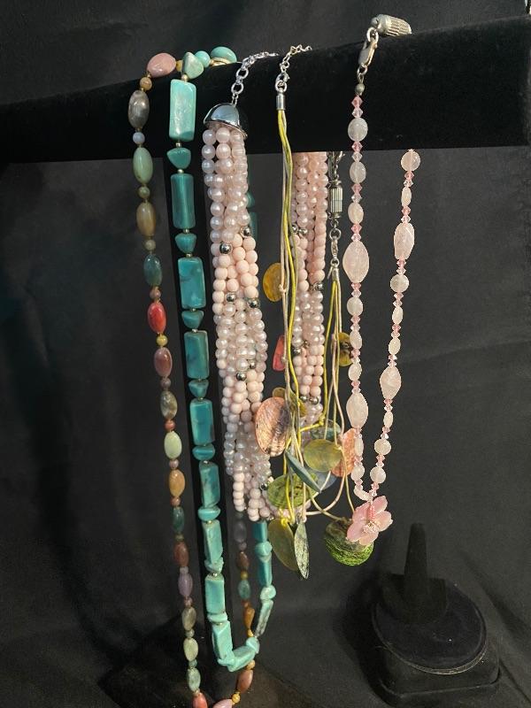 5 Necklace lot. Each very different from the other. Colorful pastels.