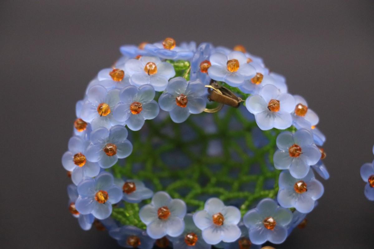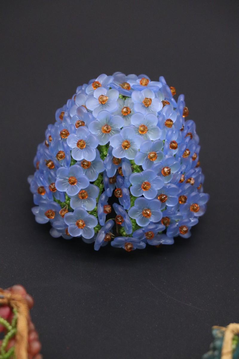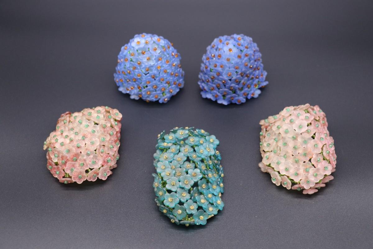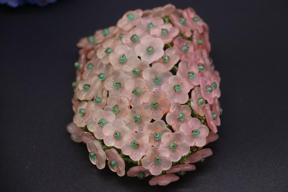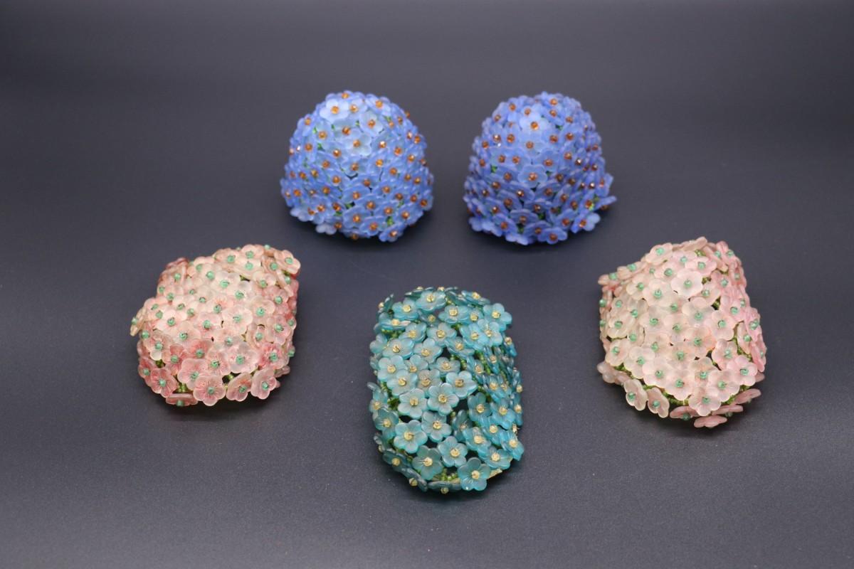 Lot of 5 Czechoslovakian Antique Flower Beaded Bulb Cover Lamp Shades in Blue, Green, and Pink. From the estate of an antique store owner and lamp enthusiast. Condition as shown, some signs of wear.