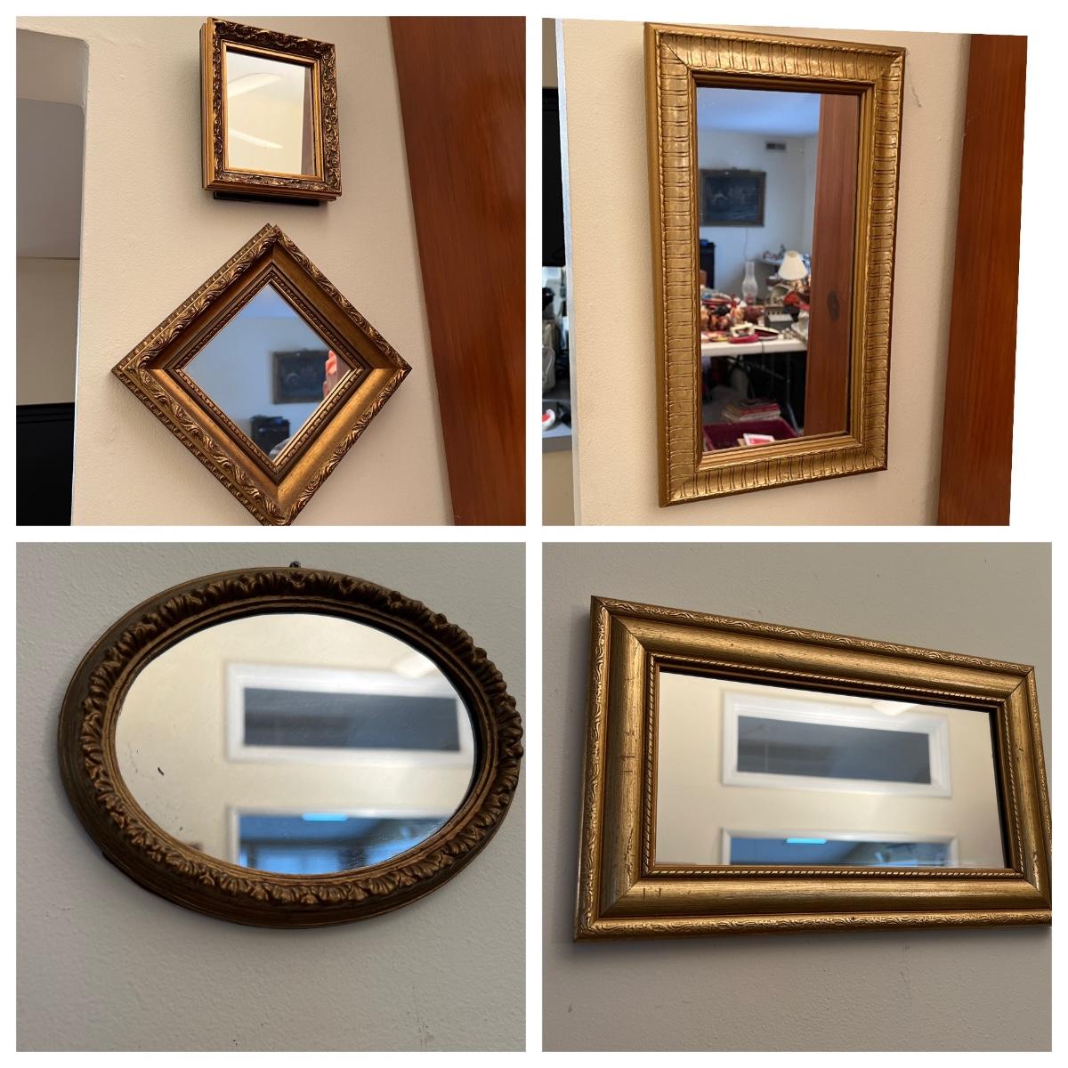 Lot of 5 Gold Gilded Framed Mirrors