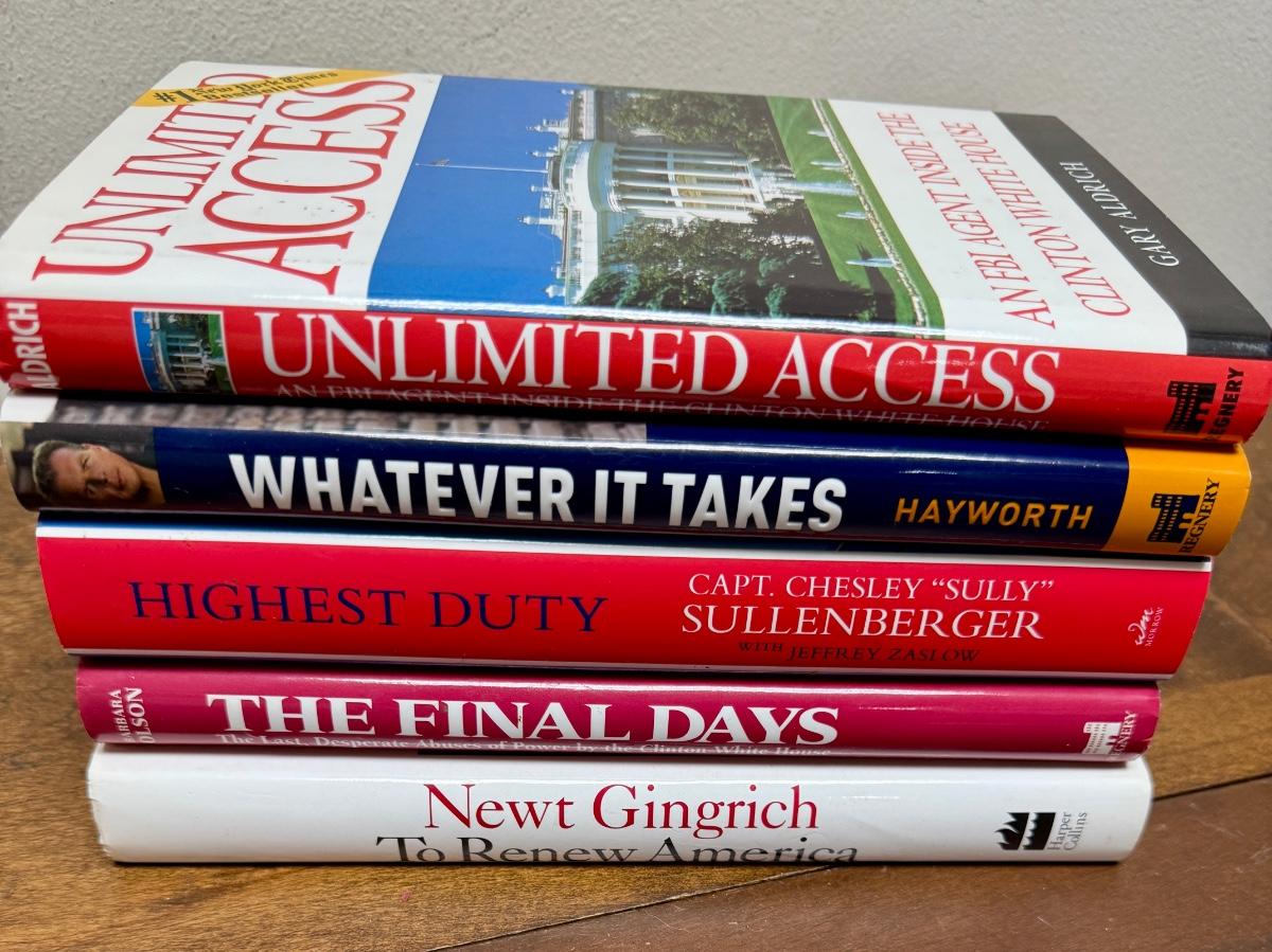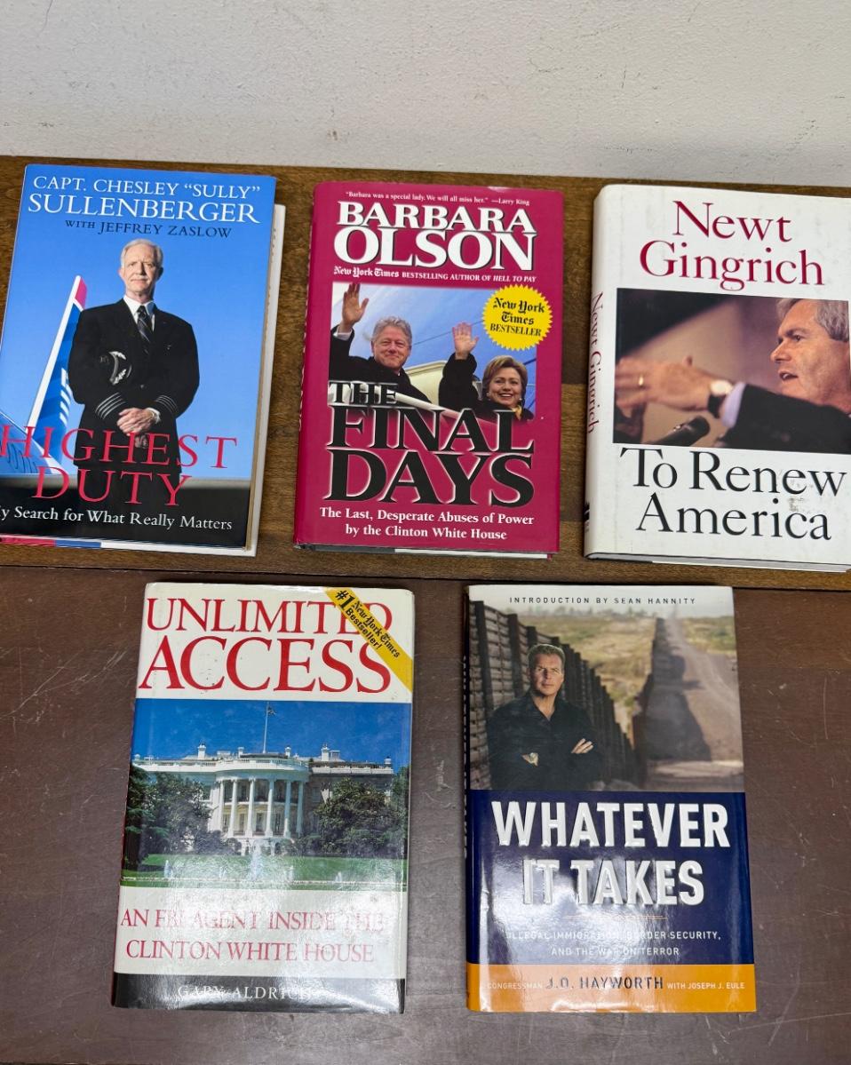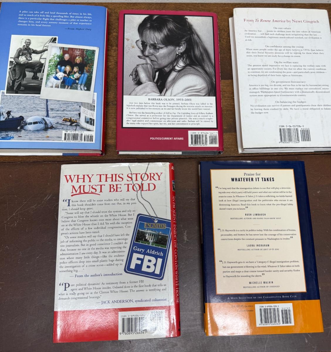 In good used condition. Authors include Gary Aldrich, Newt Gingrich, J.D. Hatworth, Barbara Olson, and Sully Sullenberger.