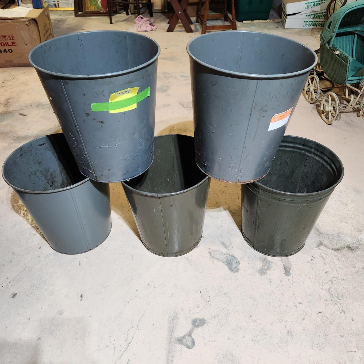 lot of 5 Industrial Age Office Metal Waste Cans U. S. Government United