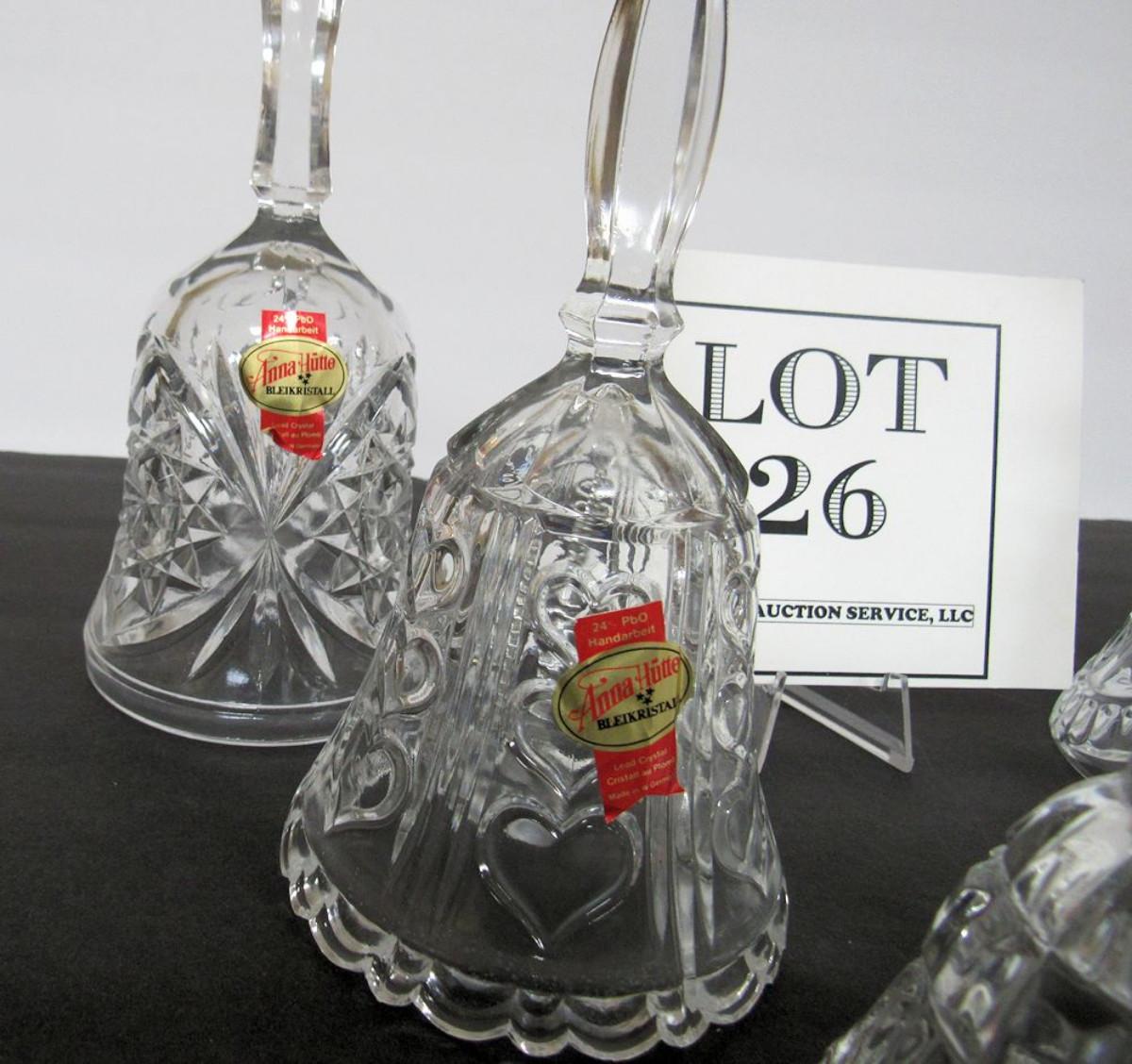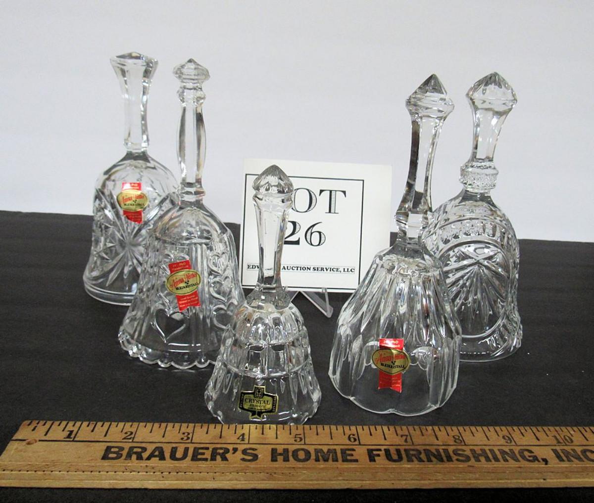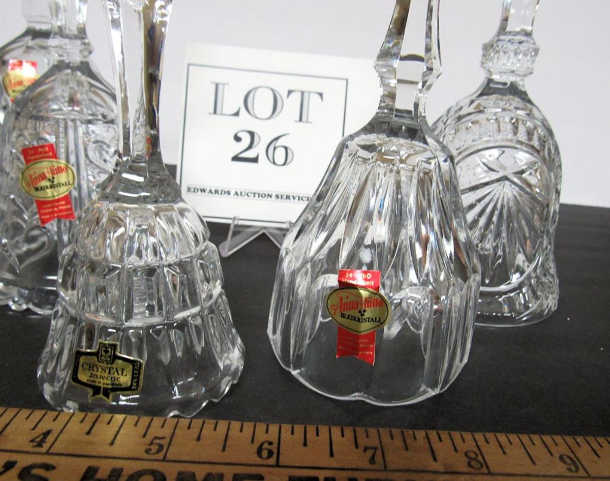 Lot of 5 Lead Crystal Glass Bells, 3 Anna Hutte West Germany, 1 Yugoslovia