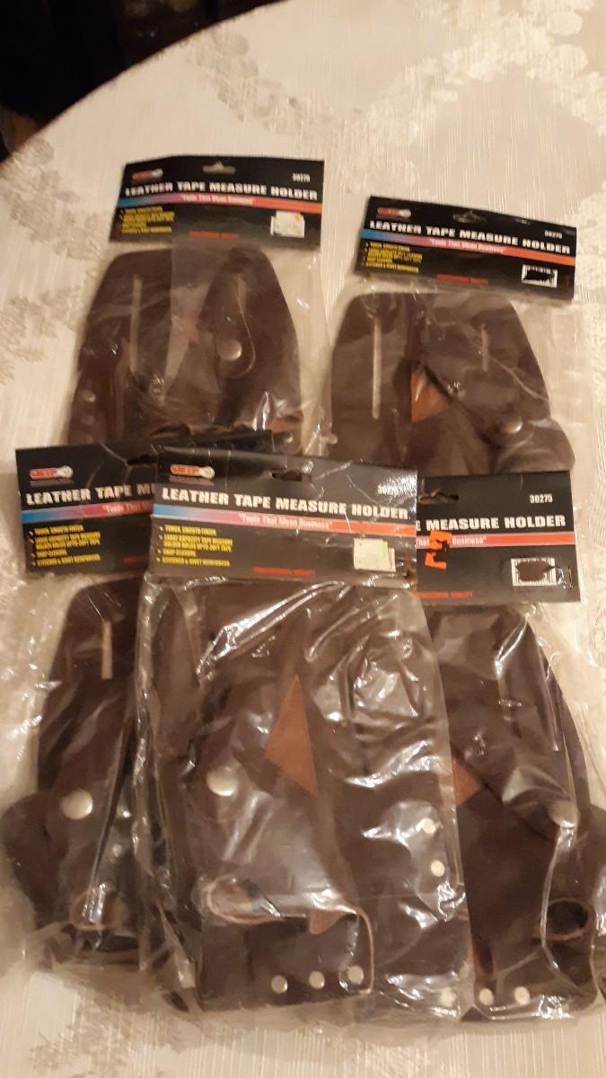 Lot of 5 Leather Tape Measure Holders. Old new stock.