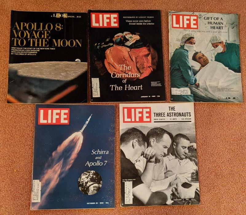 lot of 5 Look & Life magazines (#58) Apollo 7 8 Heart Transplant 1967 1968