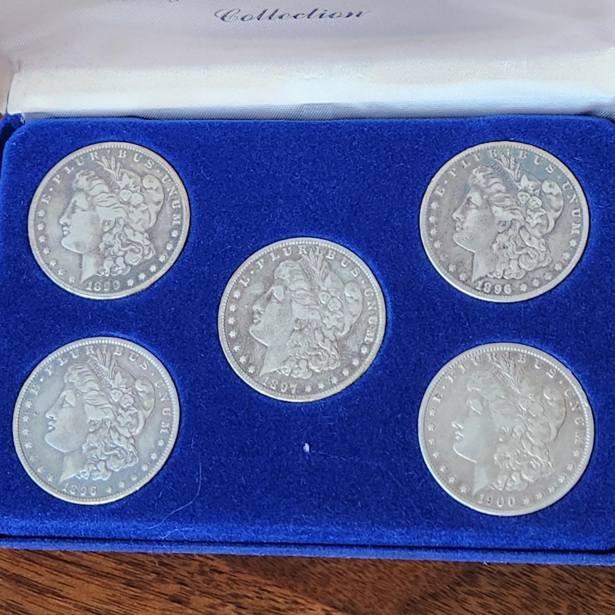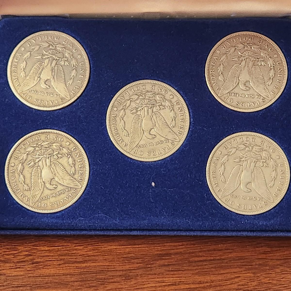 Lot of 5 Morgan Sliver Dollar Coins w Case