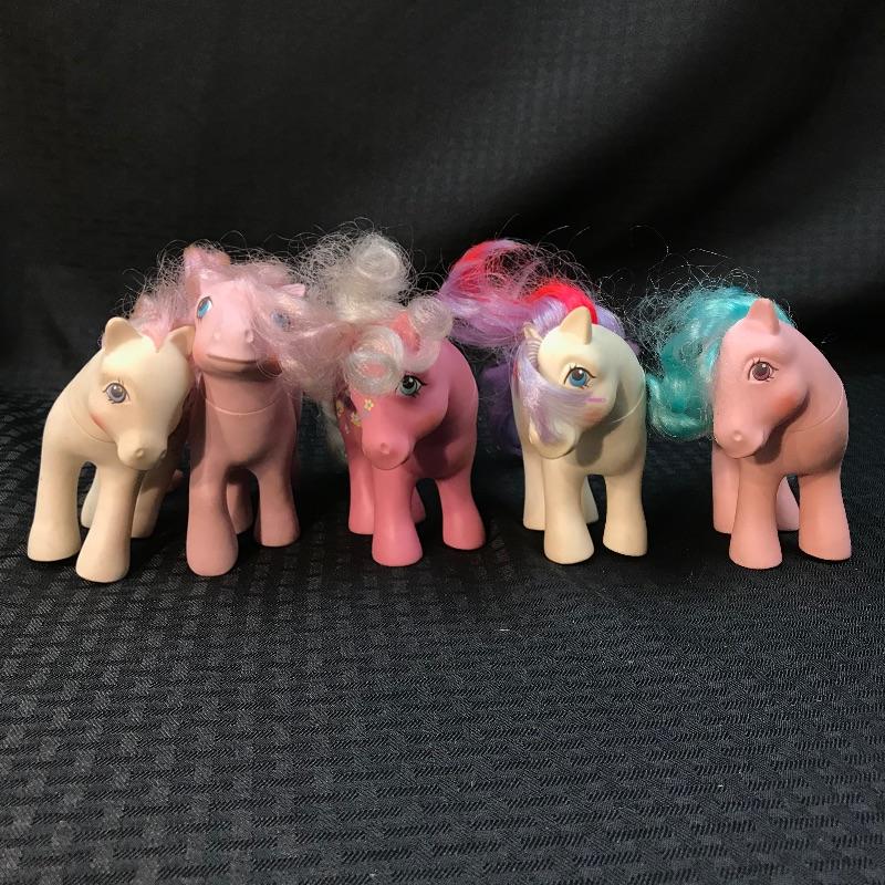 Lot of 5 My Little Pony Unicorns. Mixed lot, different years. All are in played-with condition. Little wear to the patterns. Crazy hair and in need of a bath.
