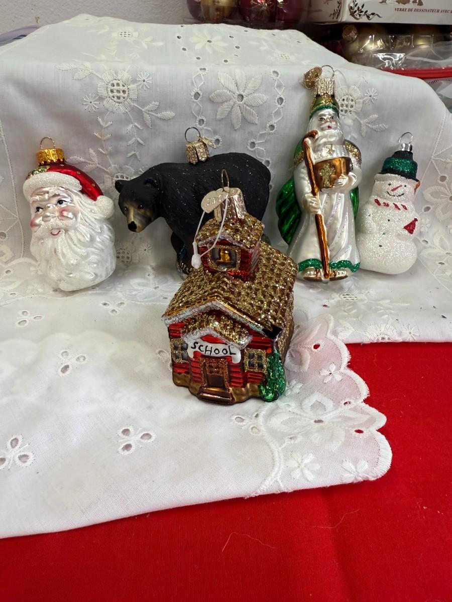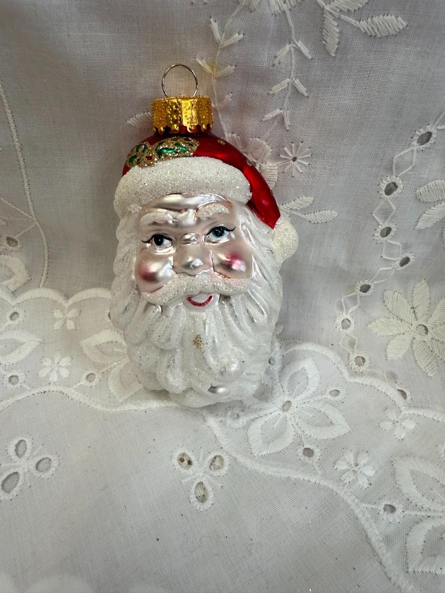 This enchanting lot of 5 ornaments features a standout vintage blown glass Santa head. Each ornament possesses unique artistry, making this collection a must-have for any holiday enthusiast.