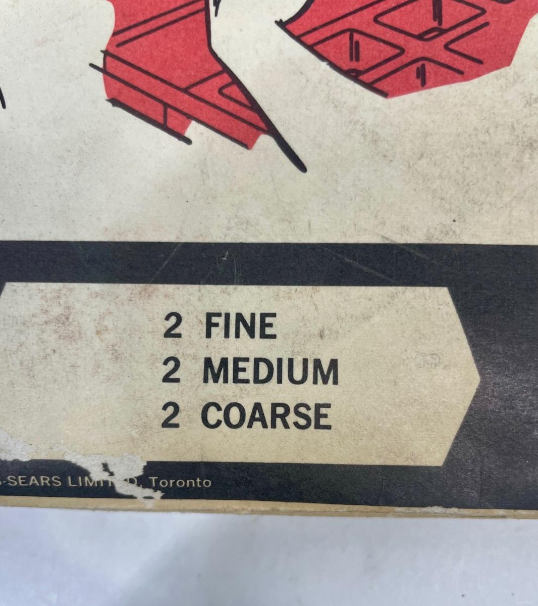 From Sears catalogue, 5 unopened packages, each with an assortment of grit type (5 per package, 25 total).