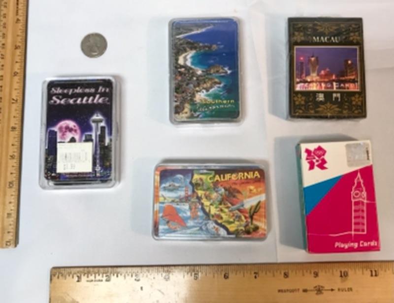 Lot. Of 5 playing card decks - Macau, Seattle, California, London