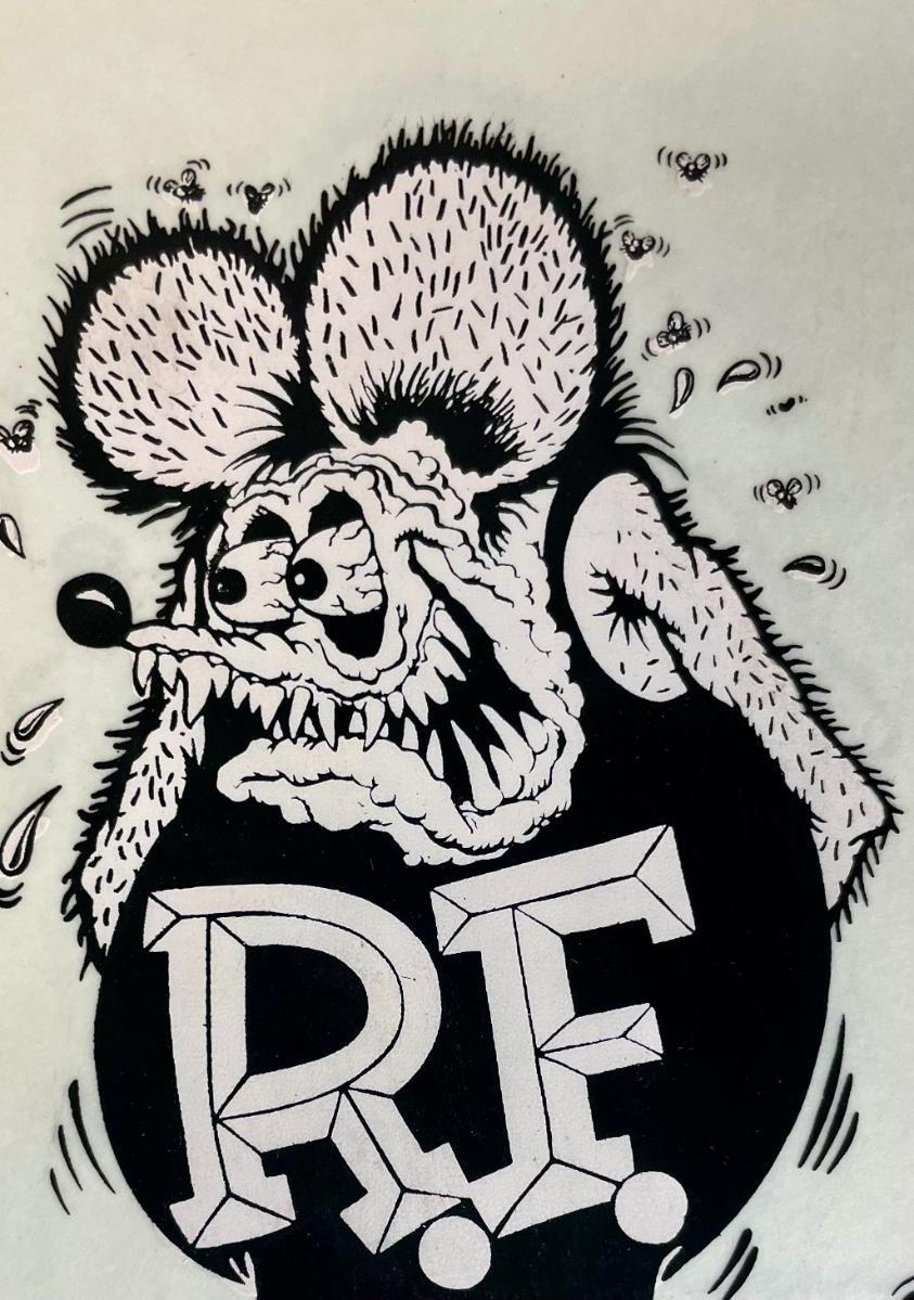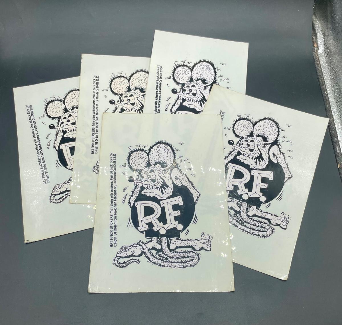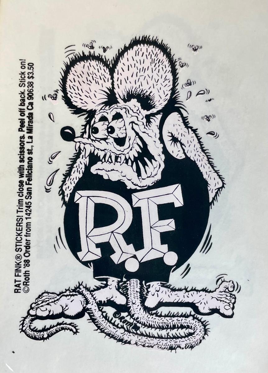 Vintage Rat Fink decals in Black and white, on clear film. Copyright in 1988 from Roth Enterprises.