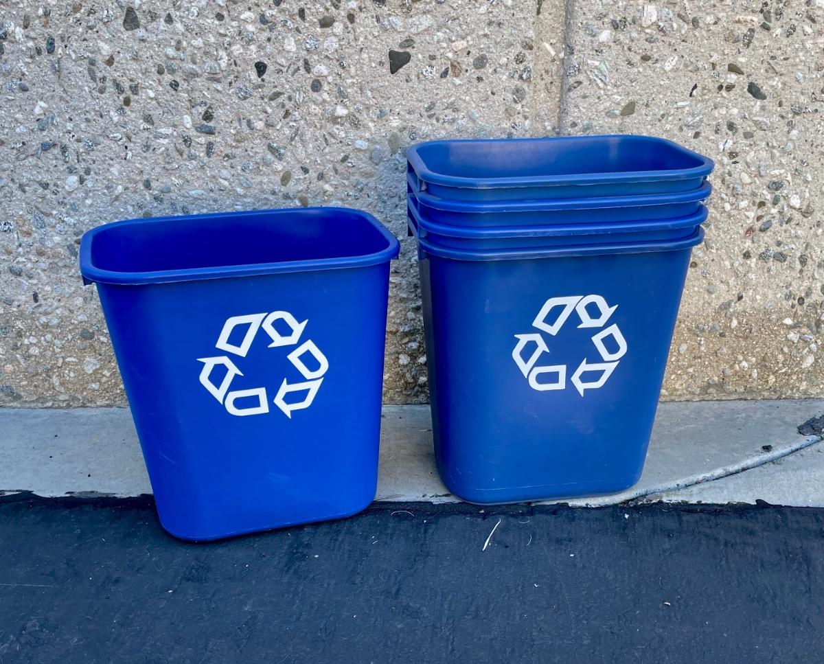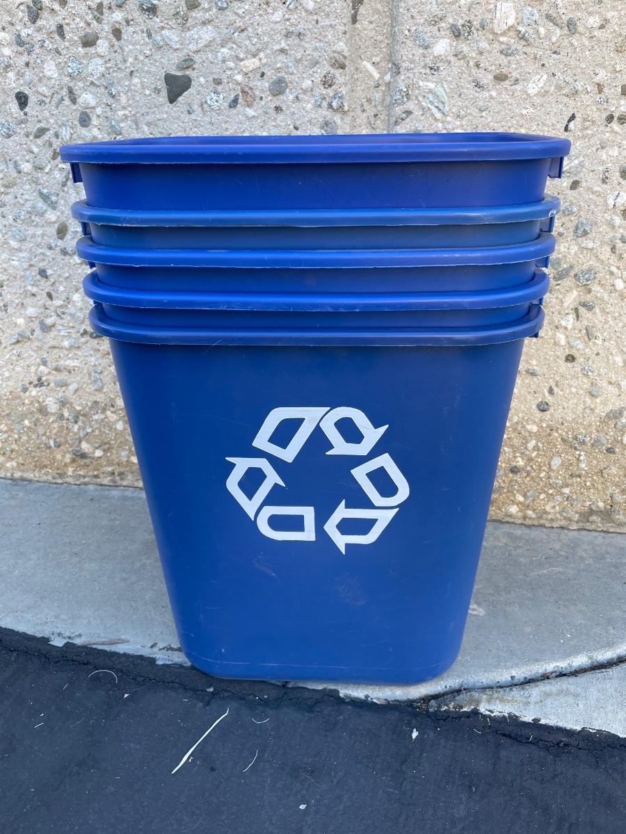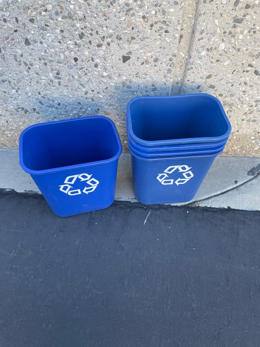 Lot of 5 Blue plastic Recycle Office Trash Cans. Used, but very clean and in great shape.
