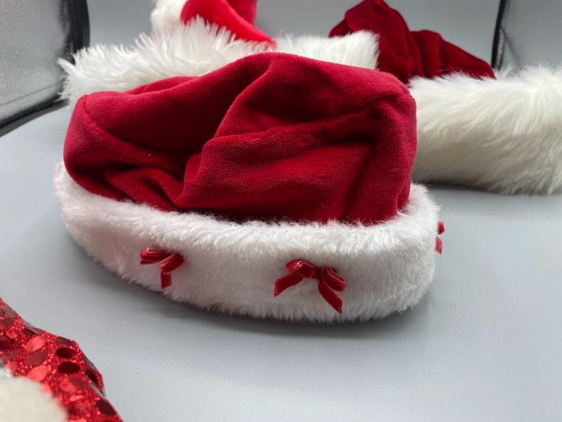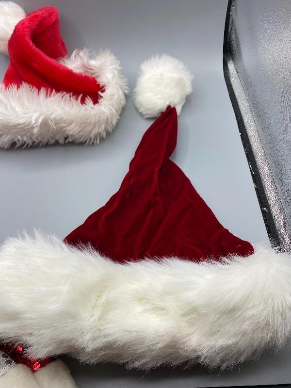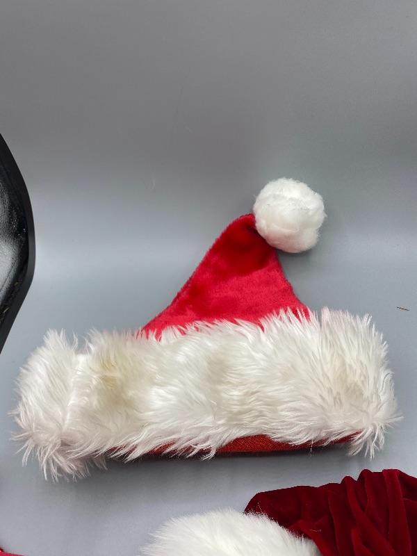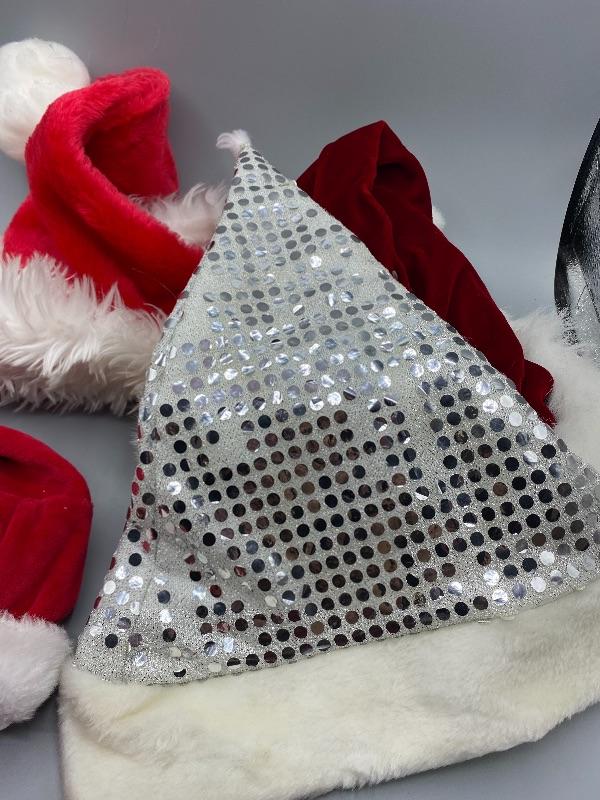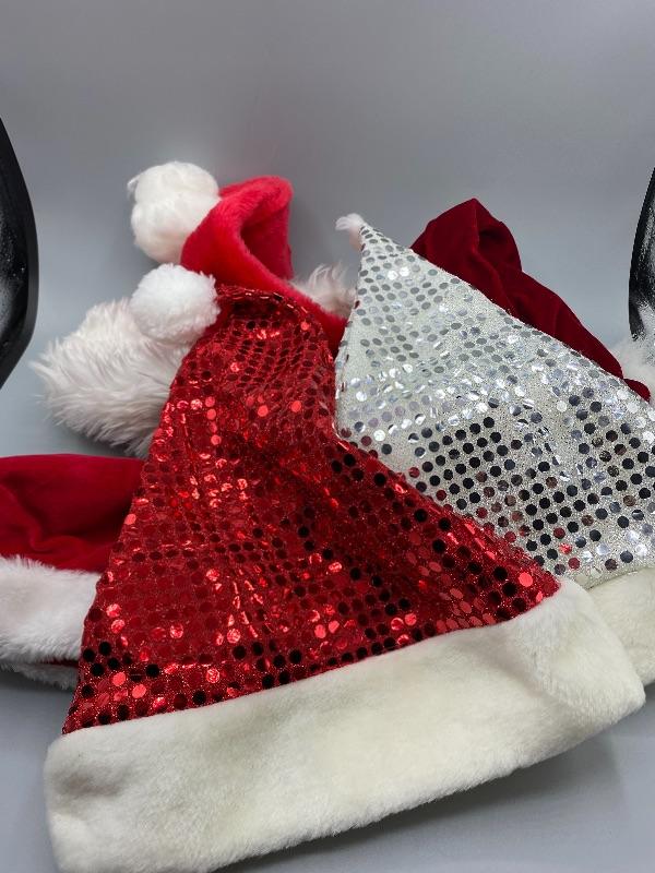 Mixed lot of 5 Santa Hats. Previously owned. Look to be in good condition.