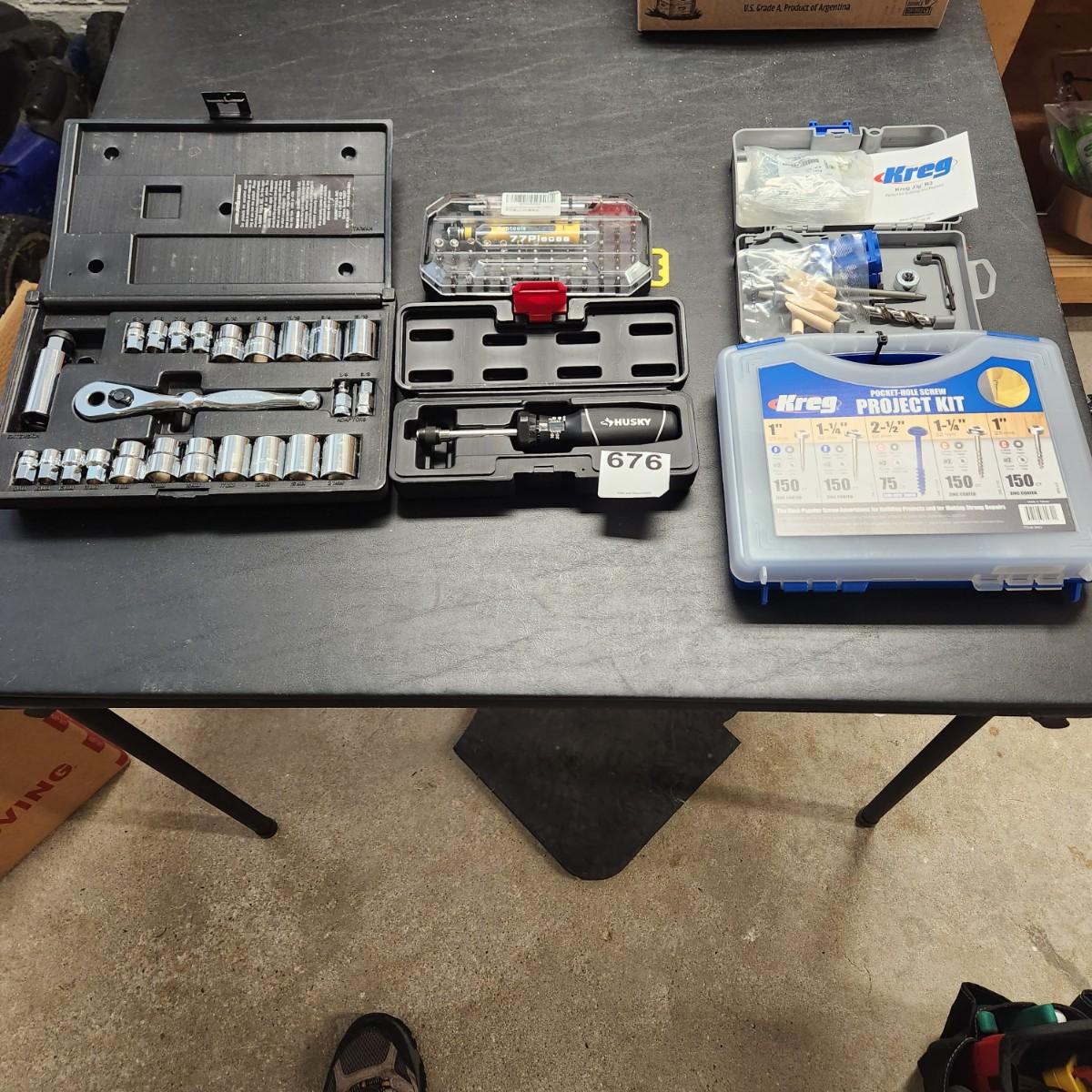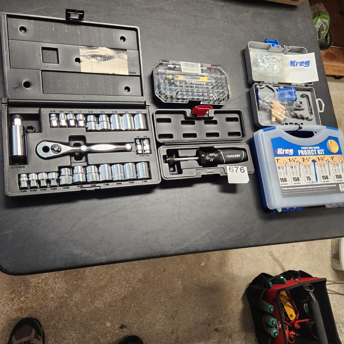 lot of 5 Tools lot Sockets, Husky, Suptools, Kreg Pocket Hole Screws & Jig R3