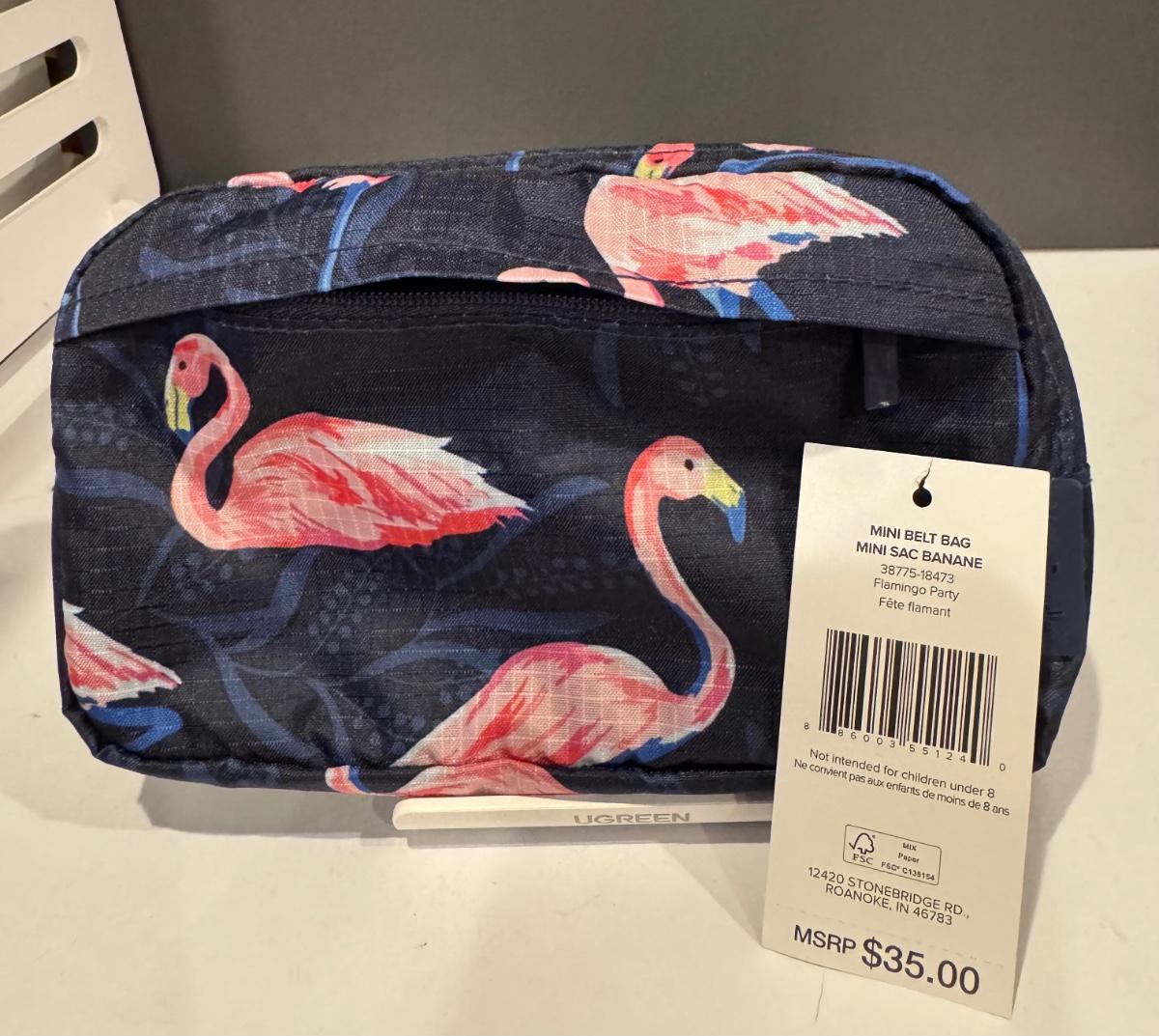 - New Mini Belt Bag, Flamingo Party pattern. Spacious inner pouch with smaller zip pouch in front and open slot pocket in back. MSRP $35.00