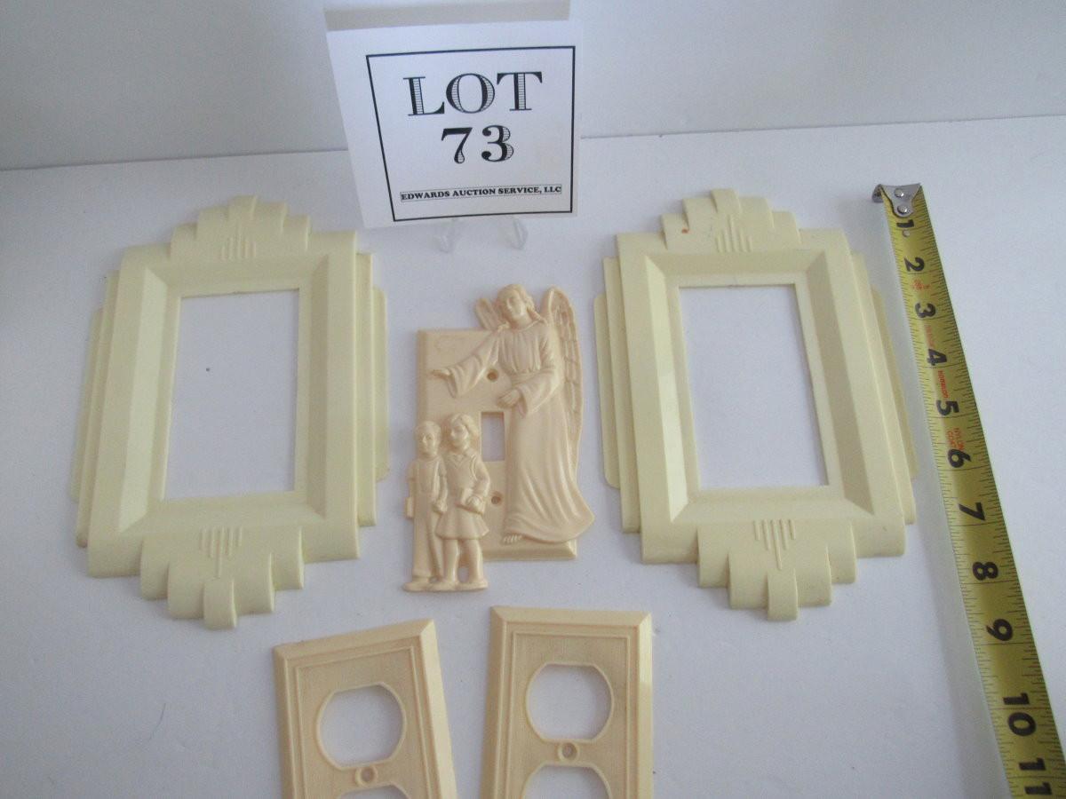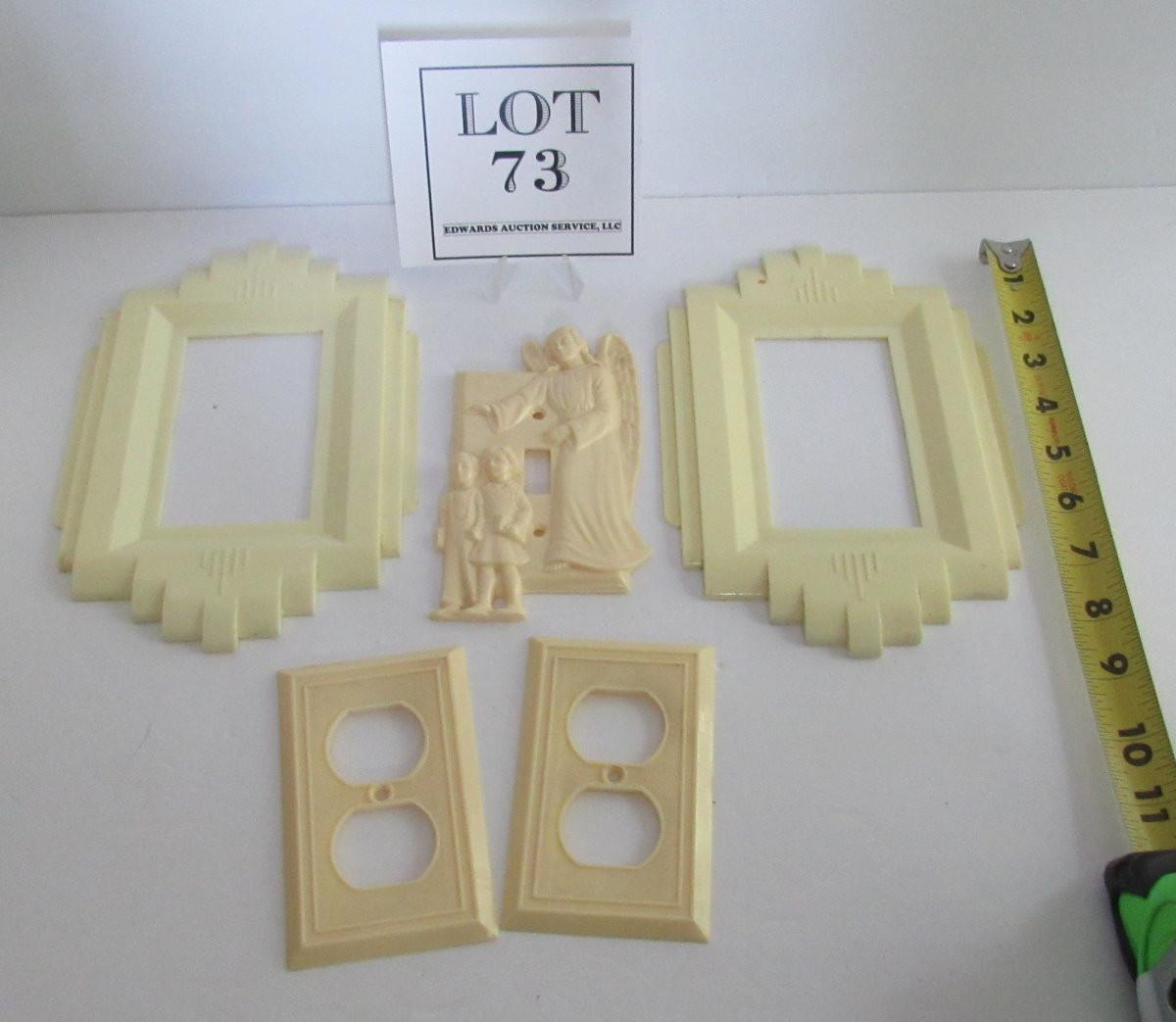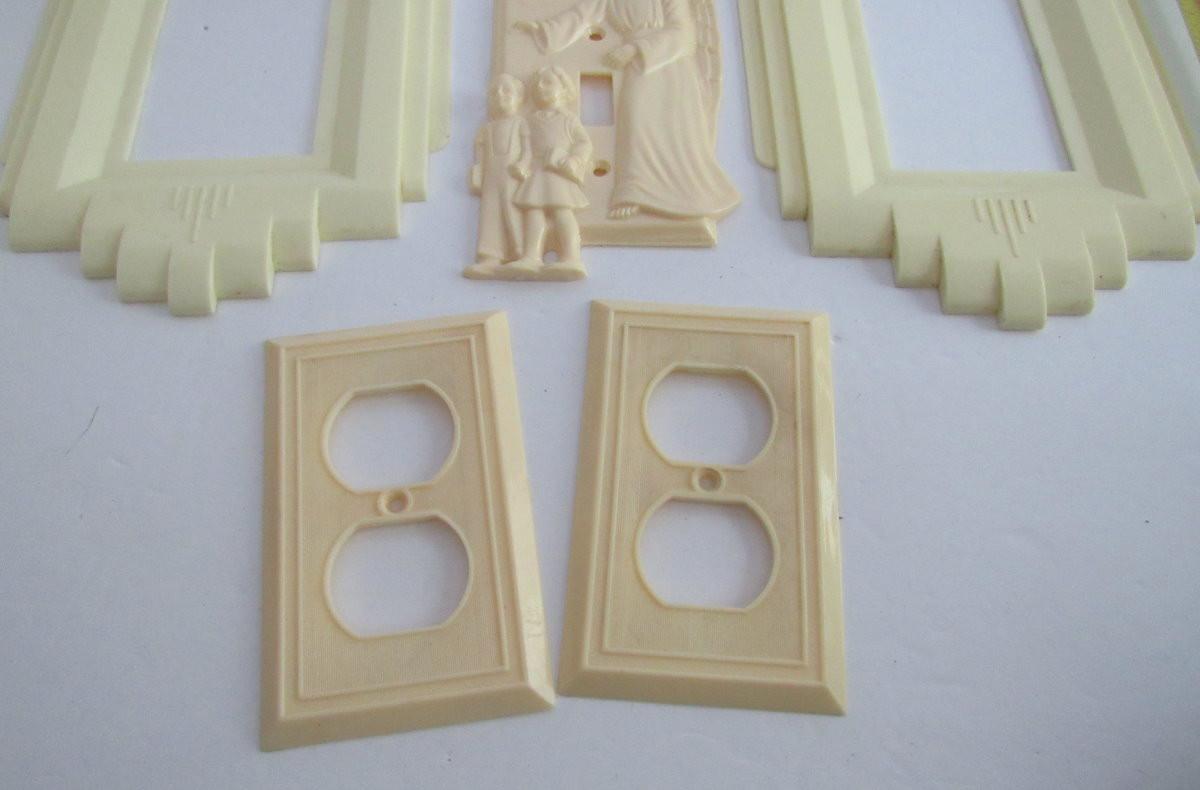 Lot of 5 Vintag Plastic Light Plate Covers, One is Angel With Children