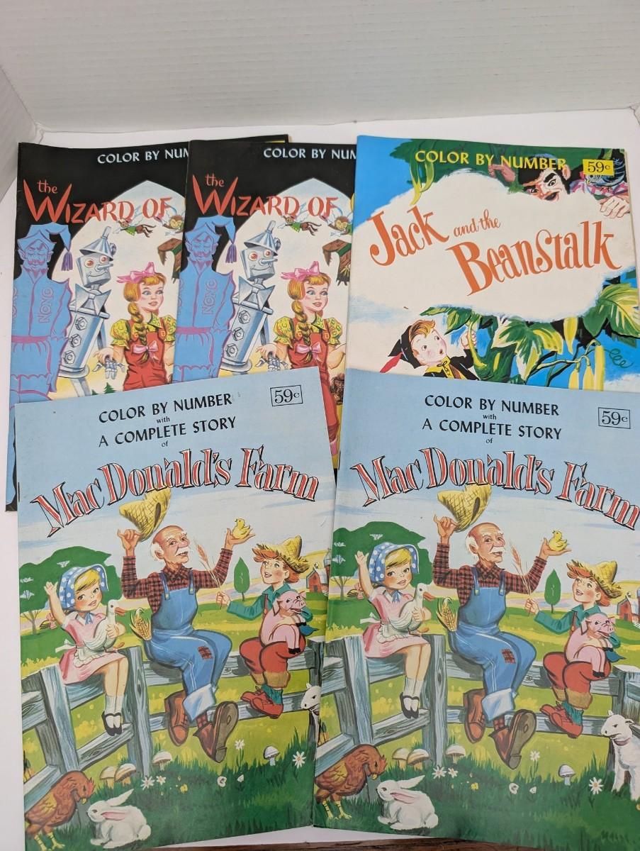 Lot Of 5 Vintage 1950s Color By Number Story Books Wizard Of Oz Jack And The Beanstalk MacDonalds Farm