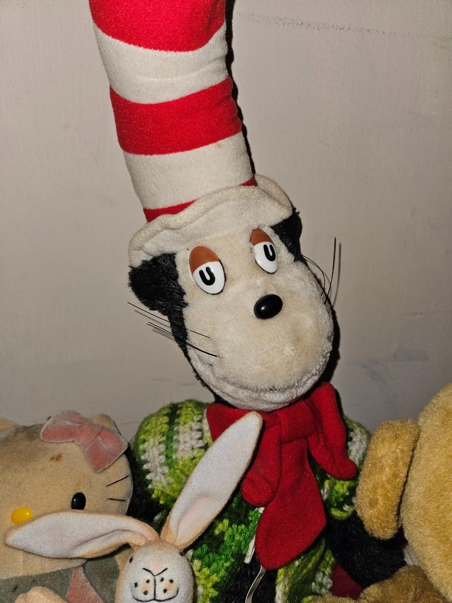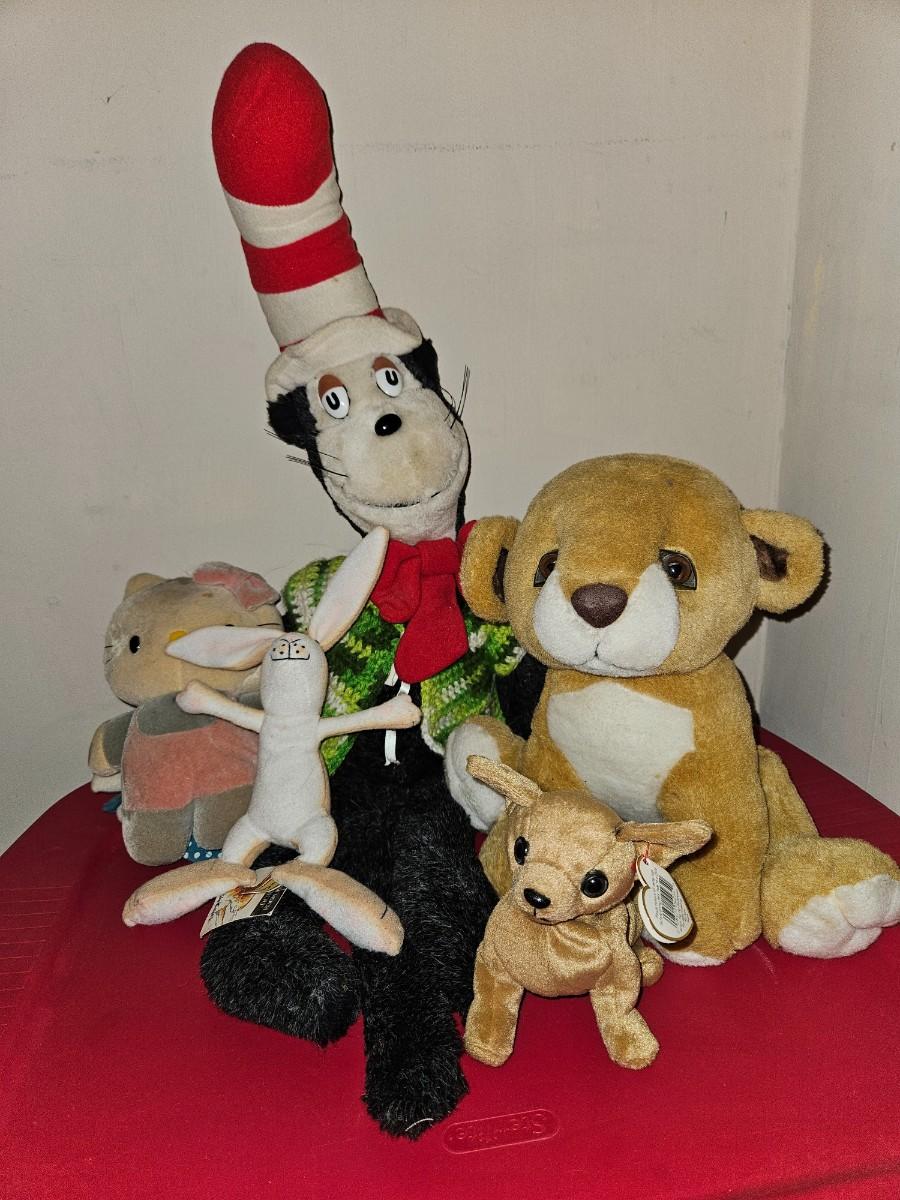 Lot of 5 Vintage 1990's Plushies Including Cat in the Hat, Hello Kitty and Beanie Baby