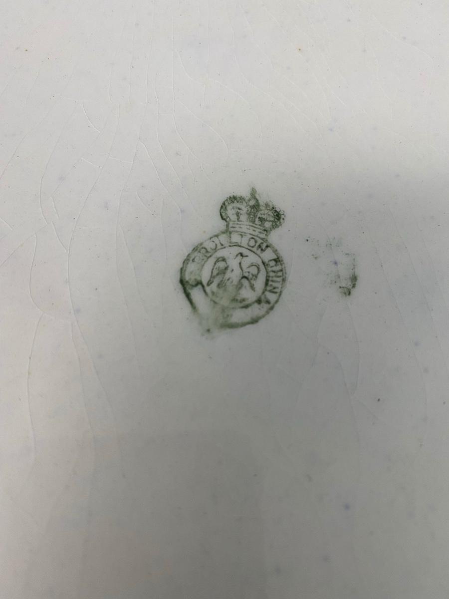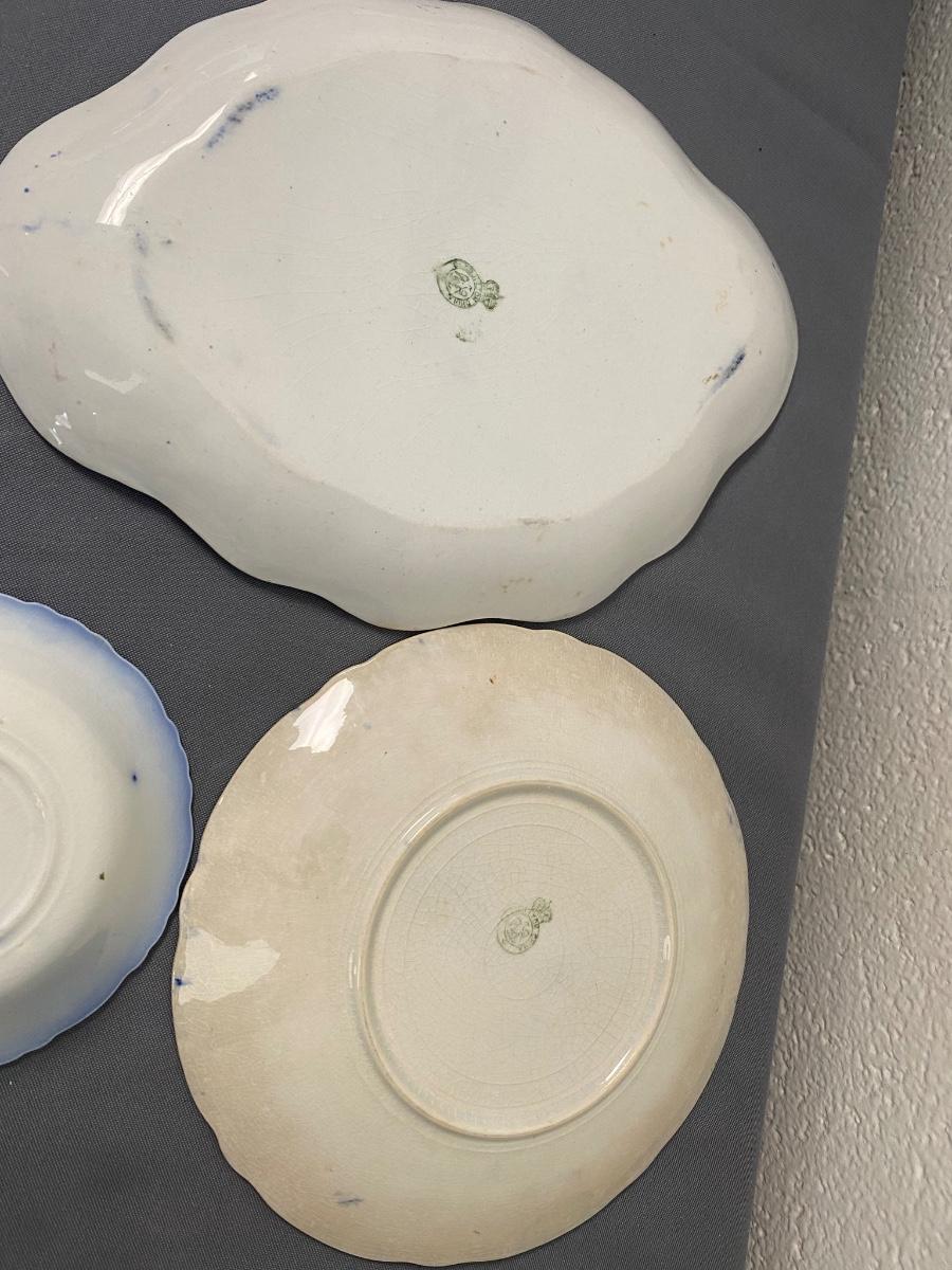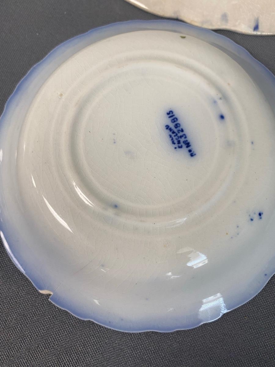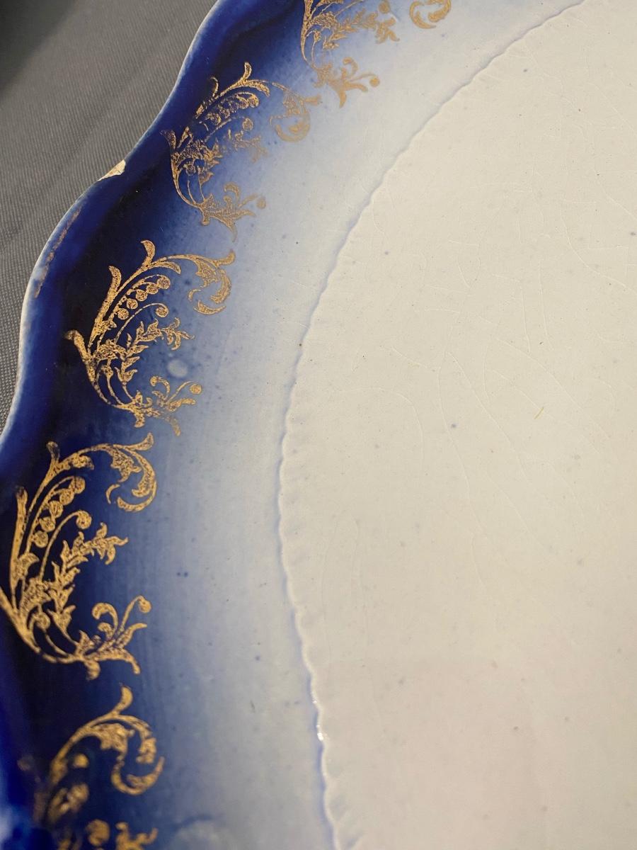 (Lot of 5) Vintage blue and gold Henry Alcock & Co. Royal Premier Semi Porcelain, Made in England, 5.5" Small Dishes & 2 large 12" & 8 5/8" Royal Doulton China Dishes