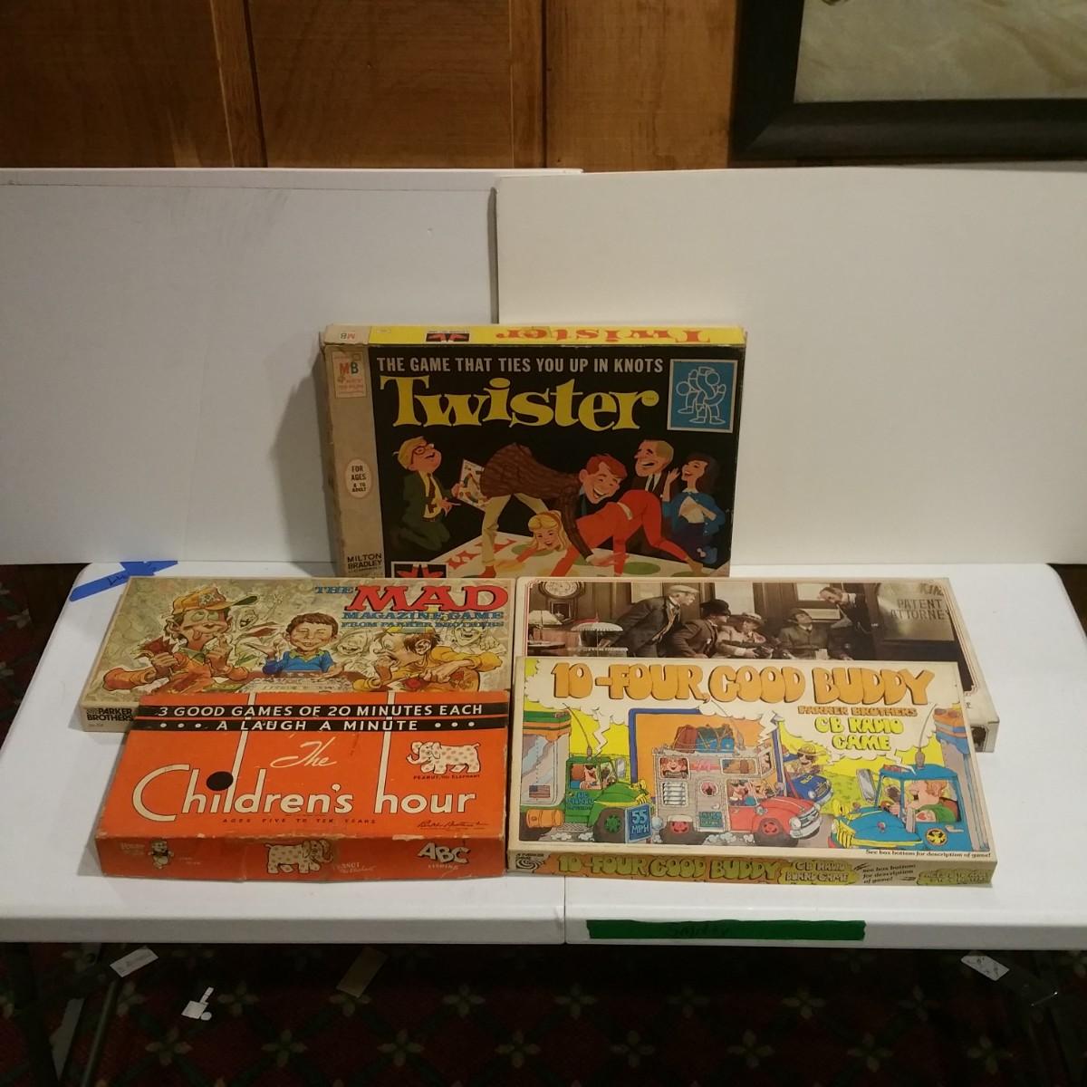 Lot of 5 Vintage Games Mad Magazine ,Twister, 10-Four Good Buddy , The Childrens Hour, The Inventors