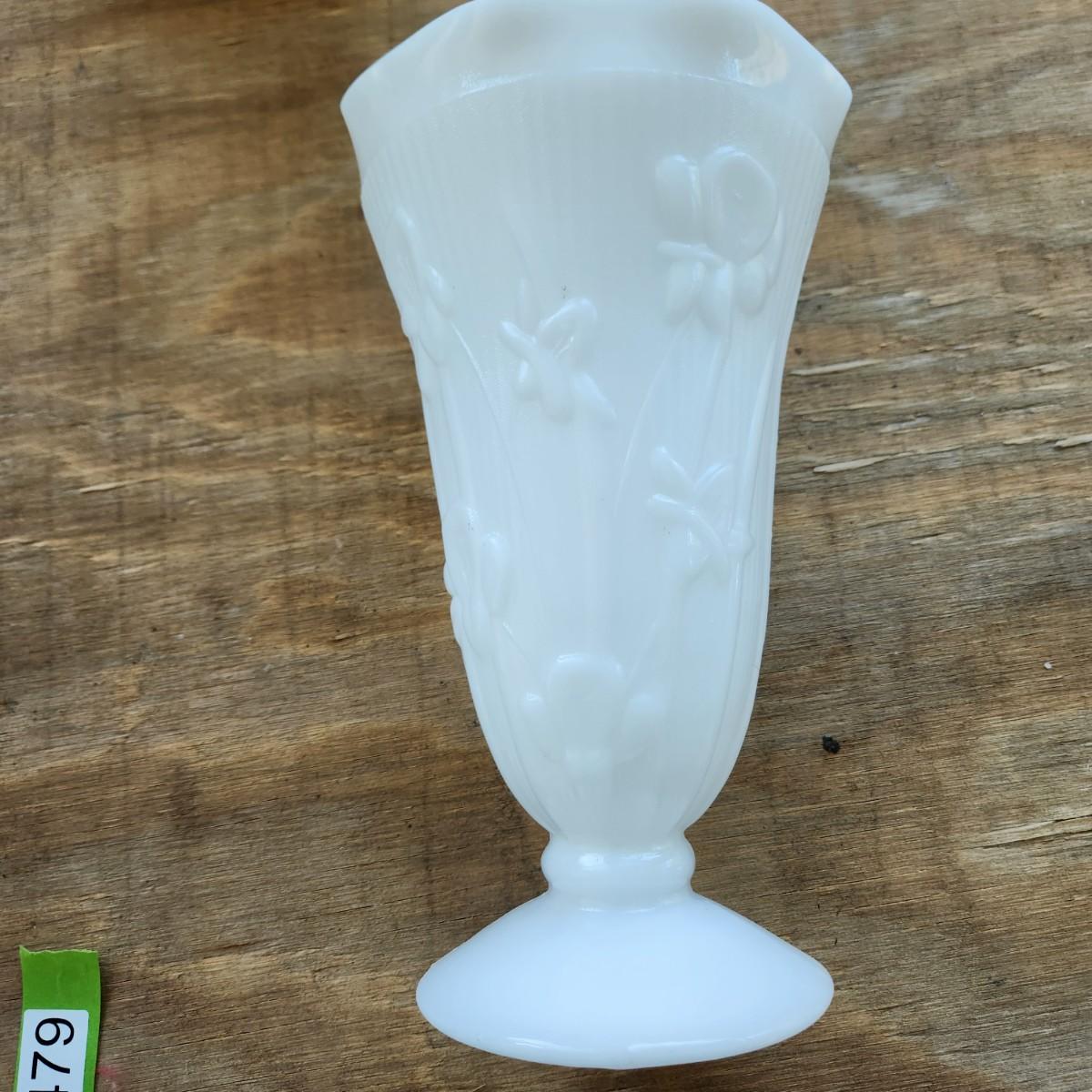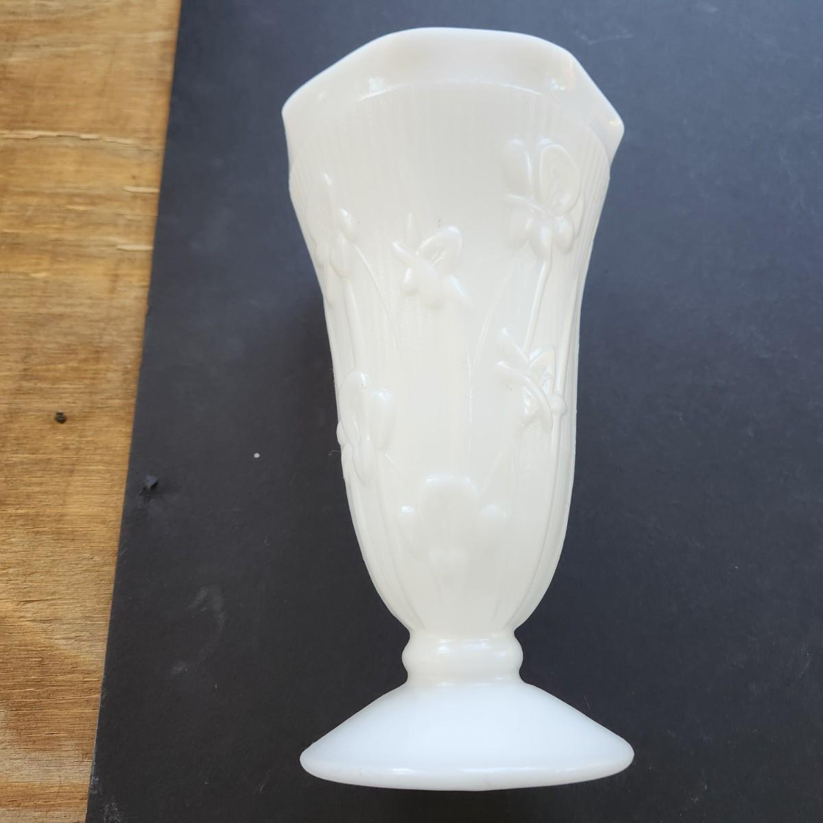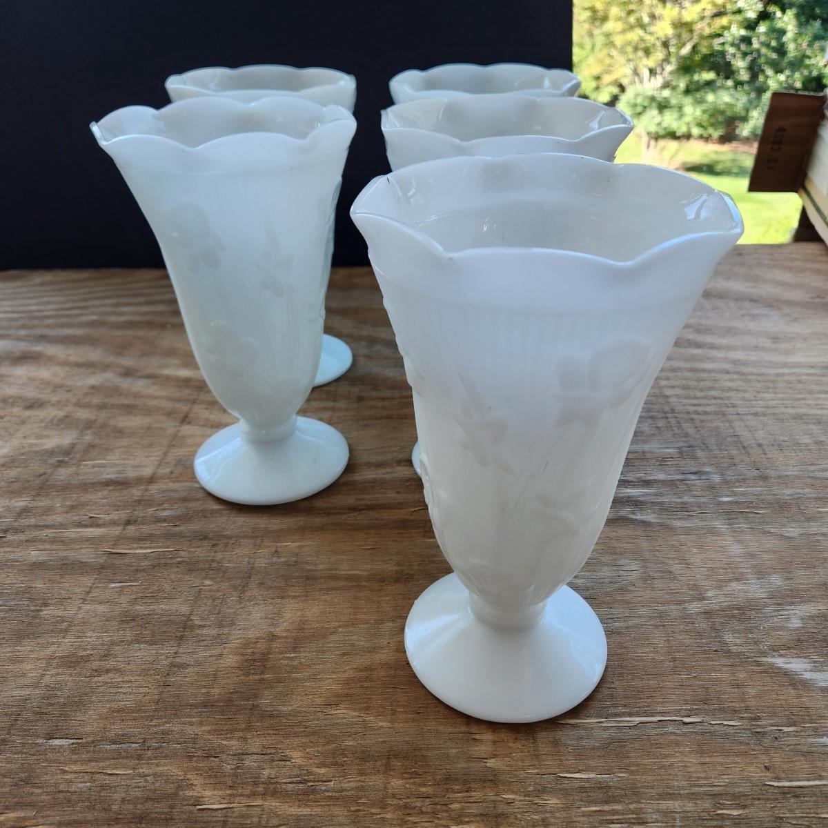 lot of 5 Vintage Jeanette Iris &Herringbone Milk Glass Vase