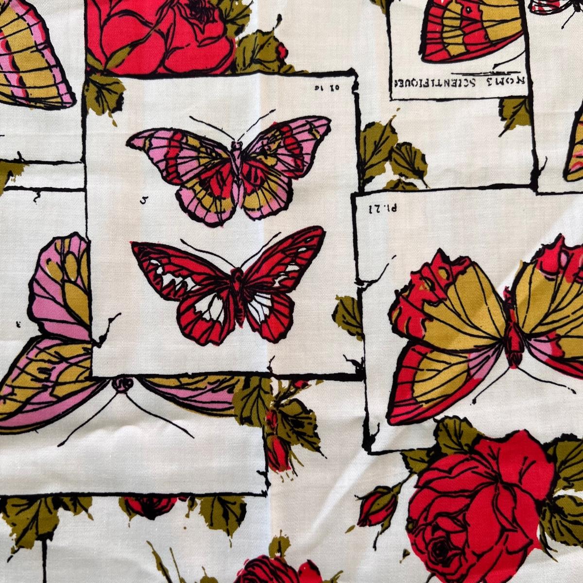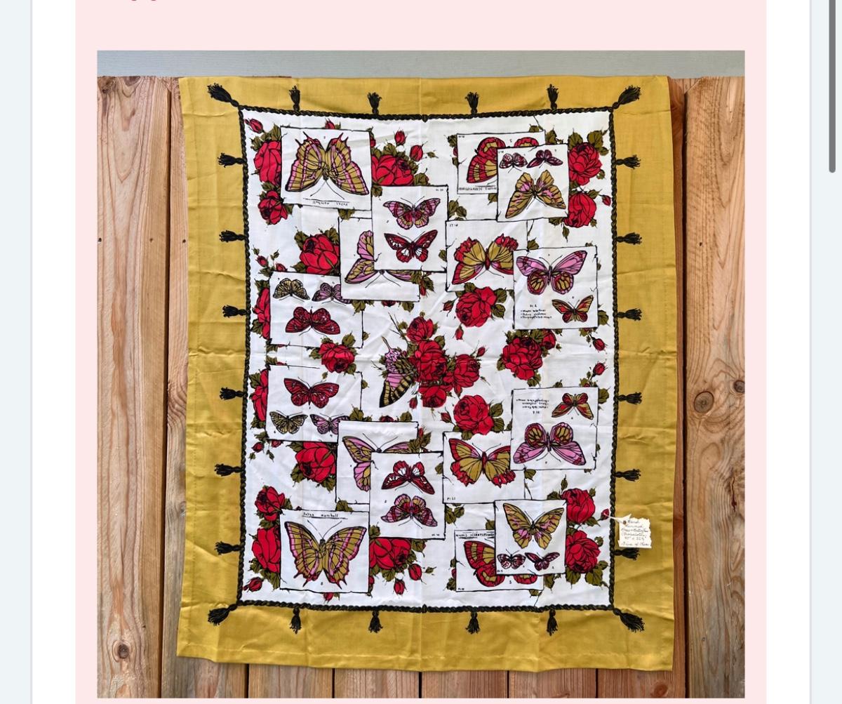 Vintage tank clothes with awesome butterfly and rose graphics. Hand Hemmed, 40" × 32½. 5 in total