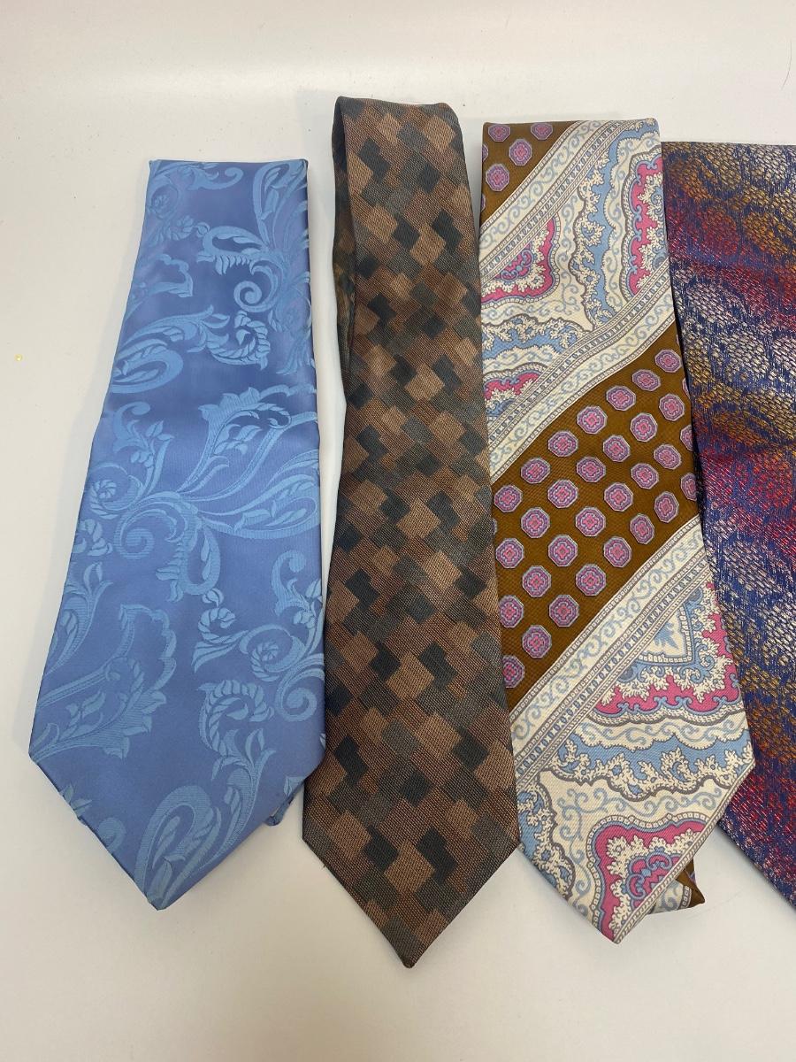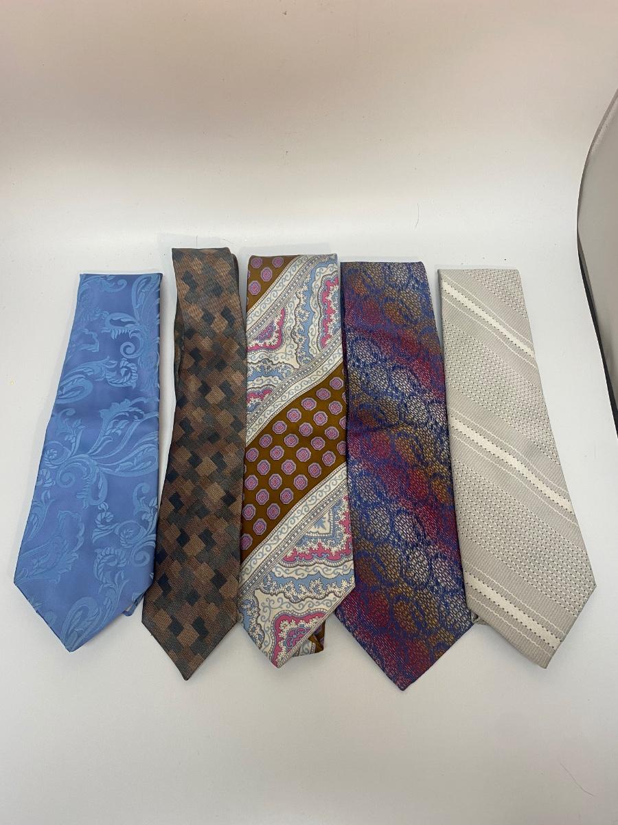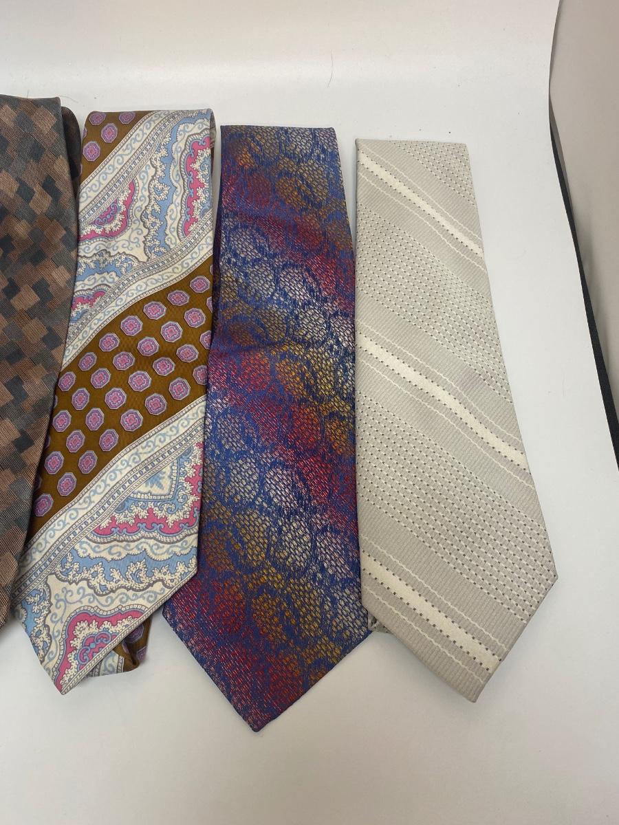 Lot of 5 vintage neck ties. May have discolor (back of neck) but no major spots or stains to the fronts of ties.