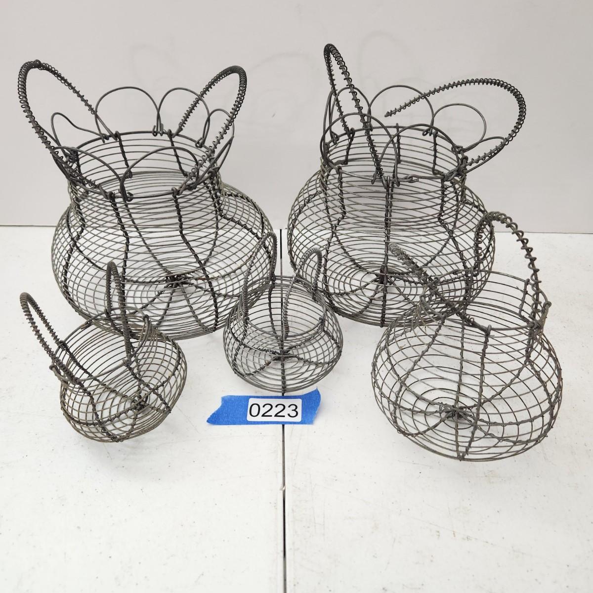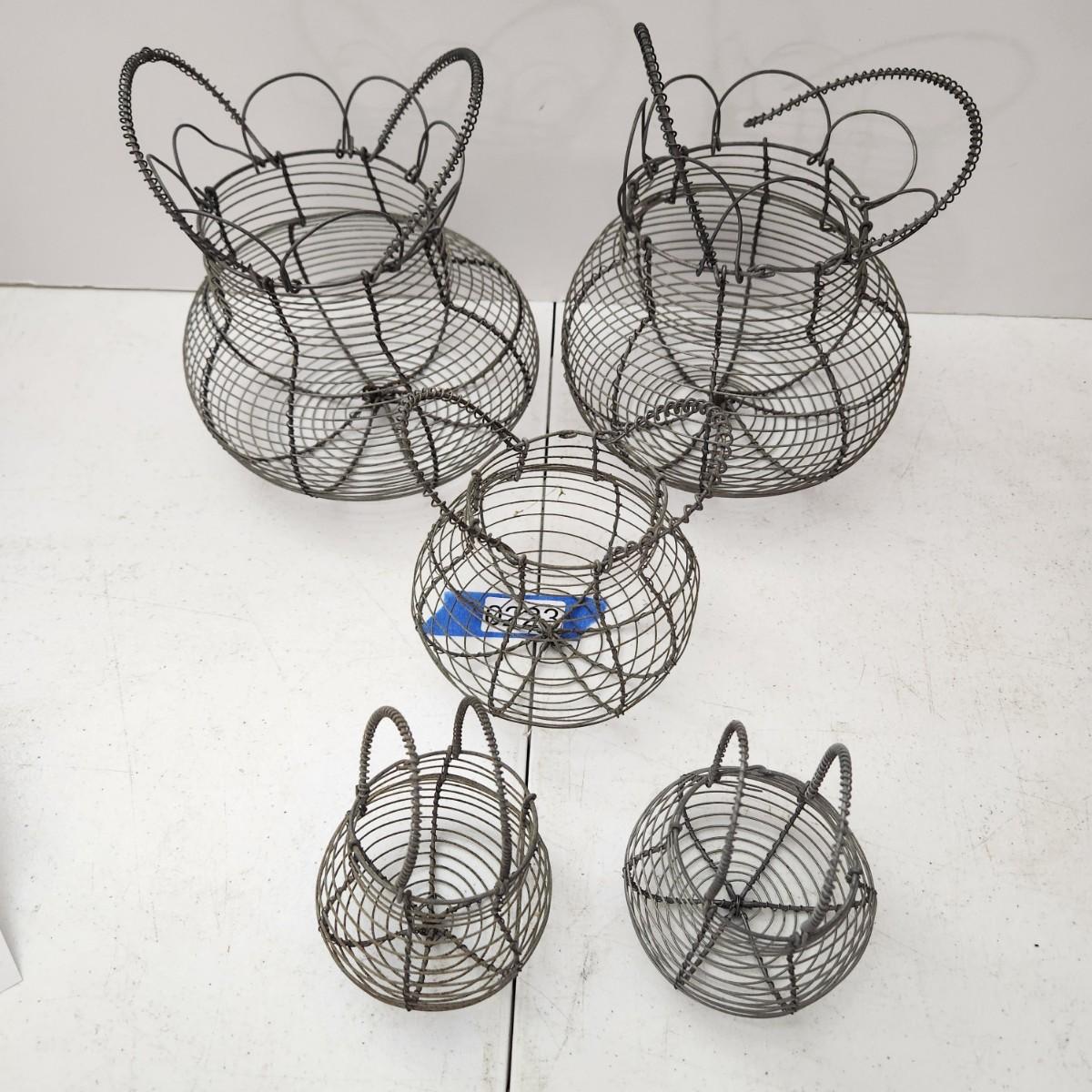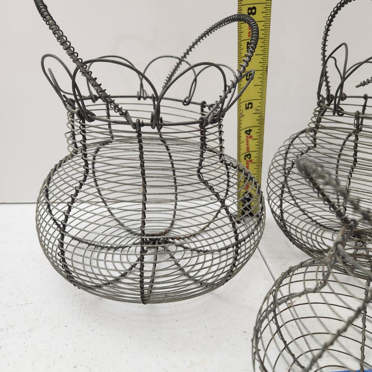 Lot of 5 Vintage Wire Egg Baskets 2 w Folding Tops