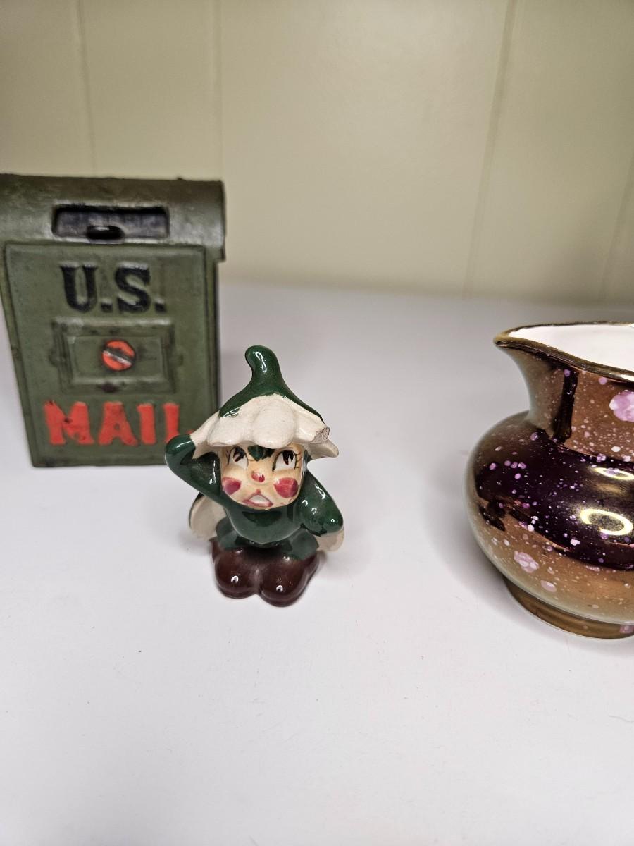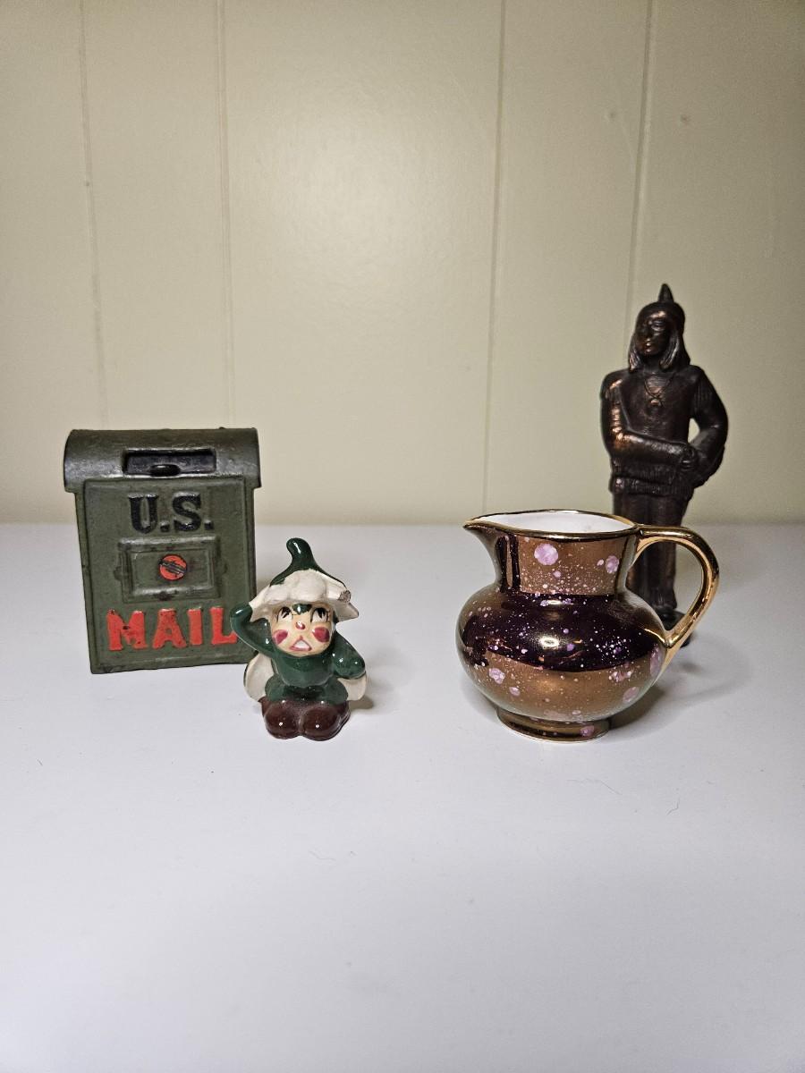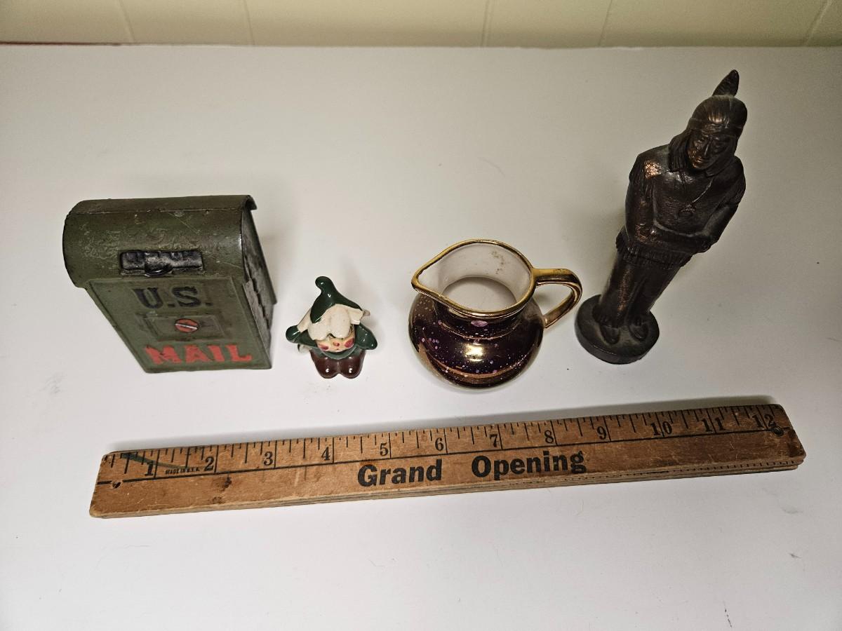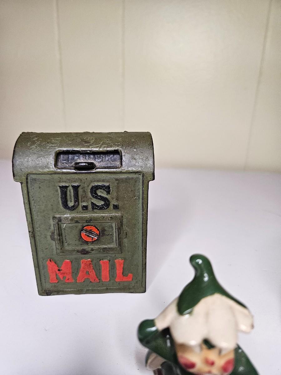 Lot of 5 Vintage/Antique Items Including Cast Iron Mailbox Bank