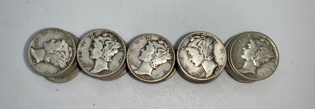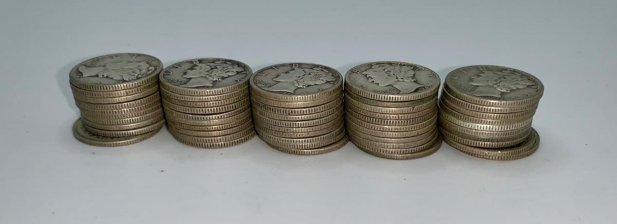 Lot of 50 Mixed Date Mercury Dimes