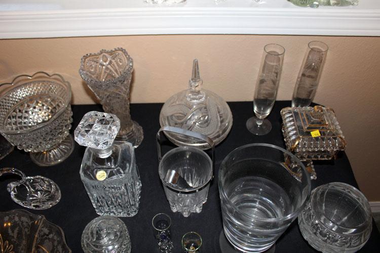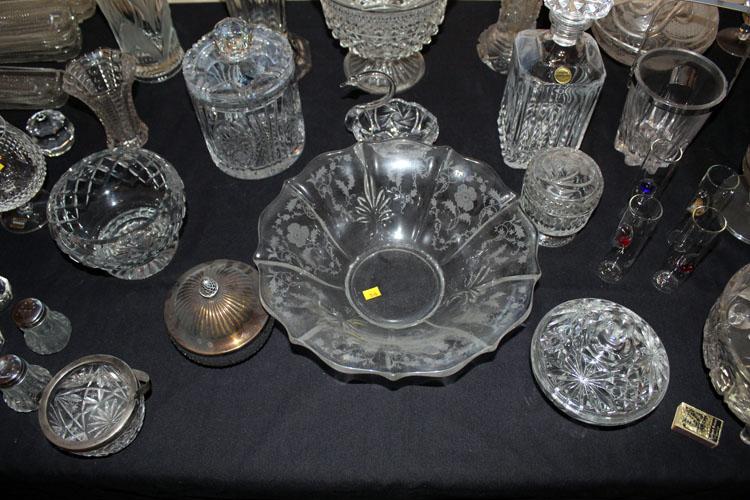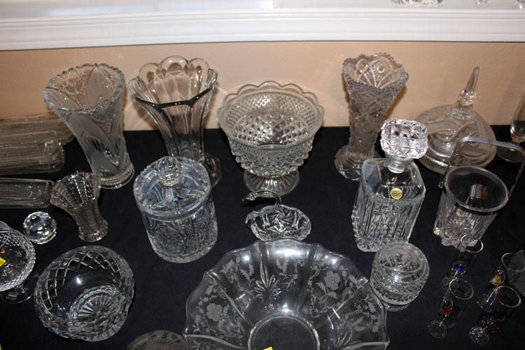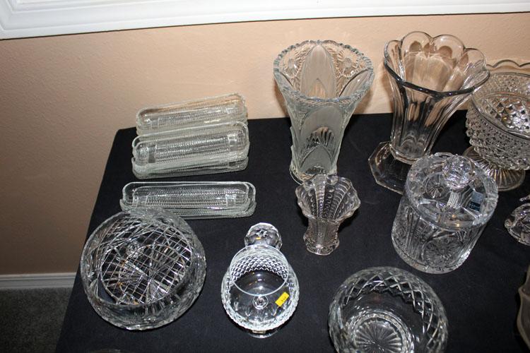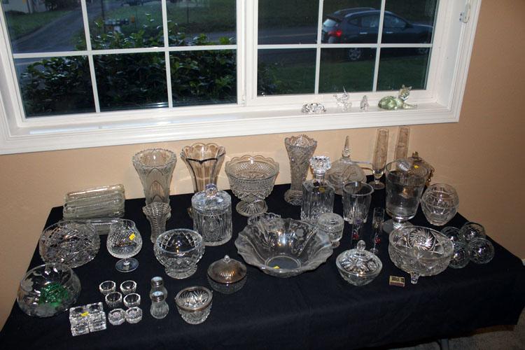 Lot of 57 clear pressed and cut glass items, all in good condition