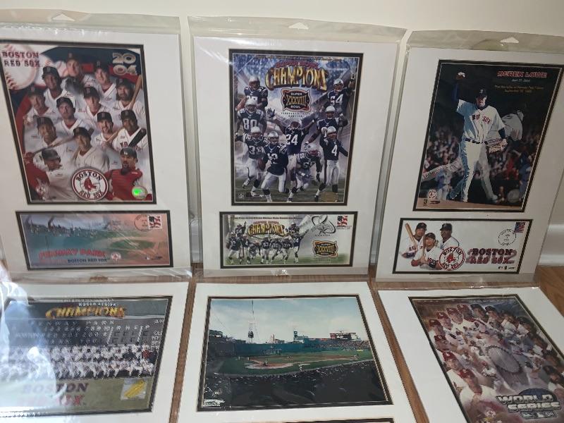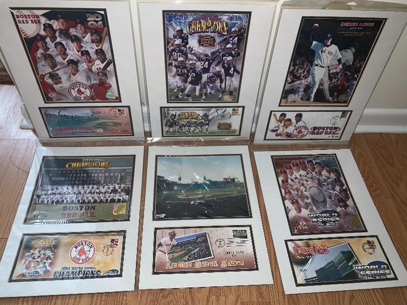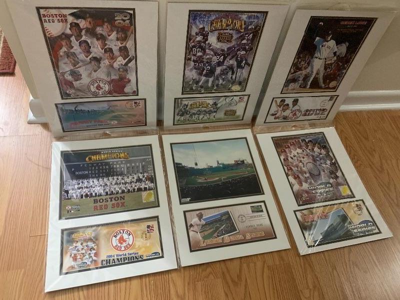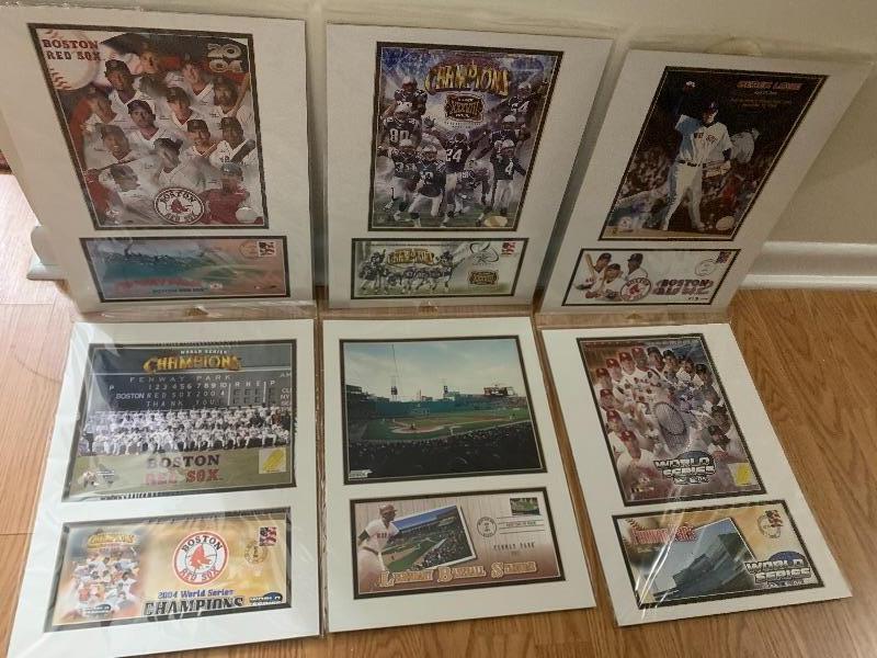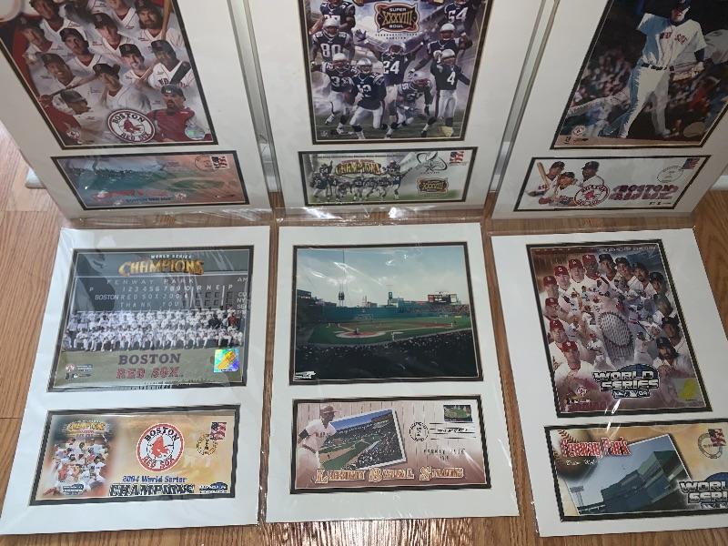 Lot of 6 - (5) Boston Red Sox & (1) New England Patriots Photo/Poster & Cancelled Stamp Card