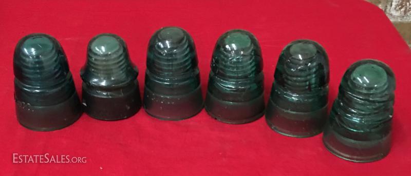 Lot of 6 Antique Blue Glass Insulators Telegraph Power Telephone