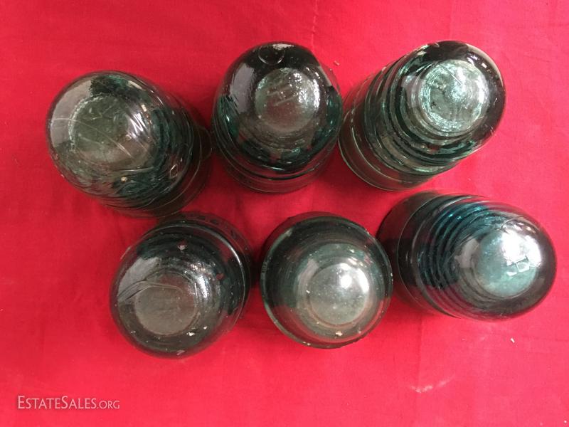 Six Blue glass insulators, some are chipped. One of 4 lots available. Will ship anywhere in the US for $12.95.