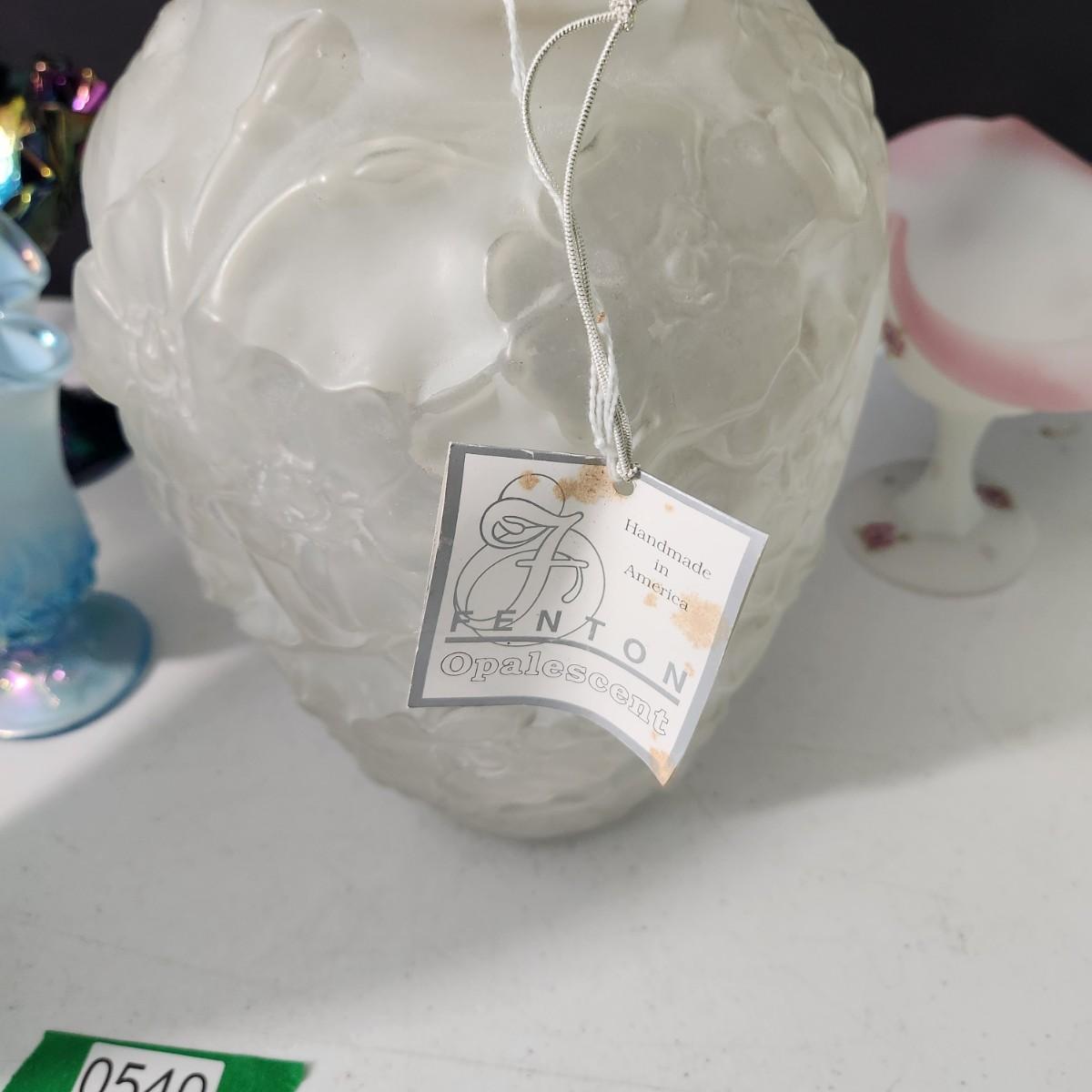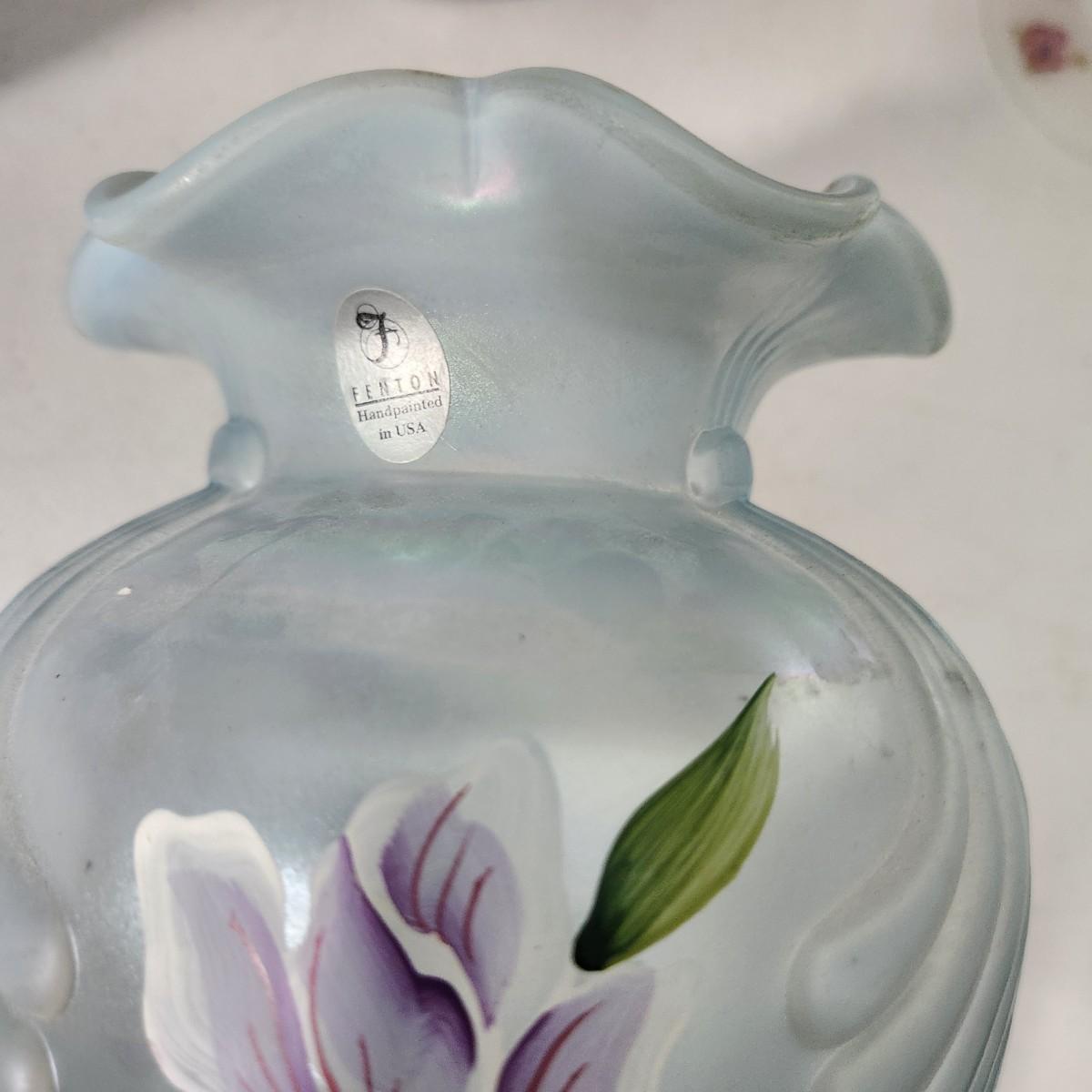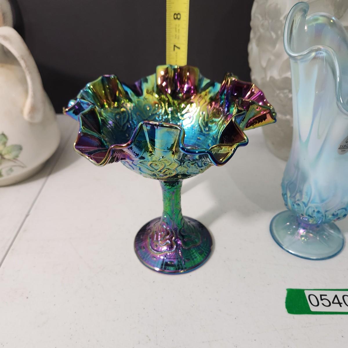 Lot of 6 Art Glass Vases, Carnival Candy Dish ,Hand Painted Fenton