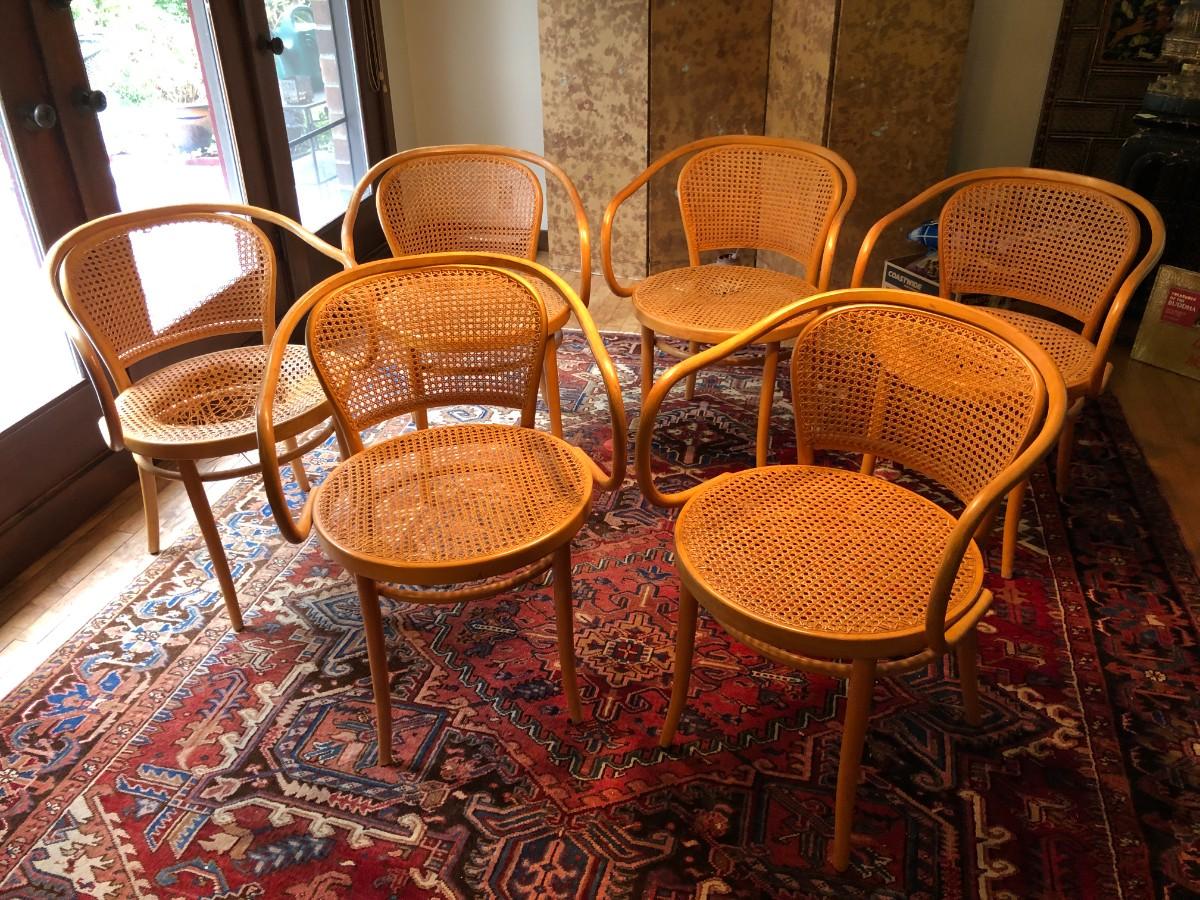 Lot of 6 Bentwood Cane Chairs Made in Czechoslovakia after Thonet Style