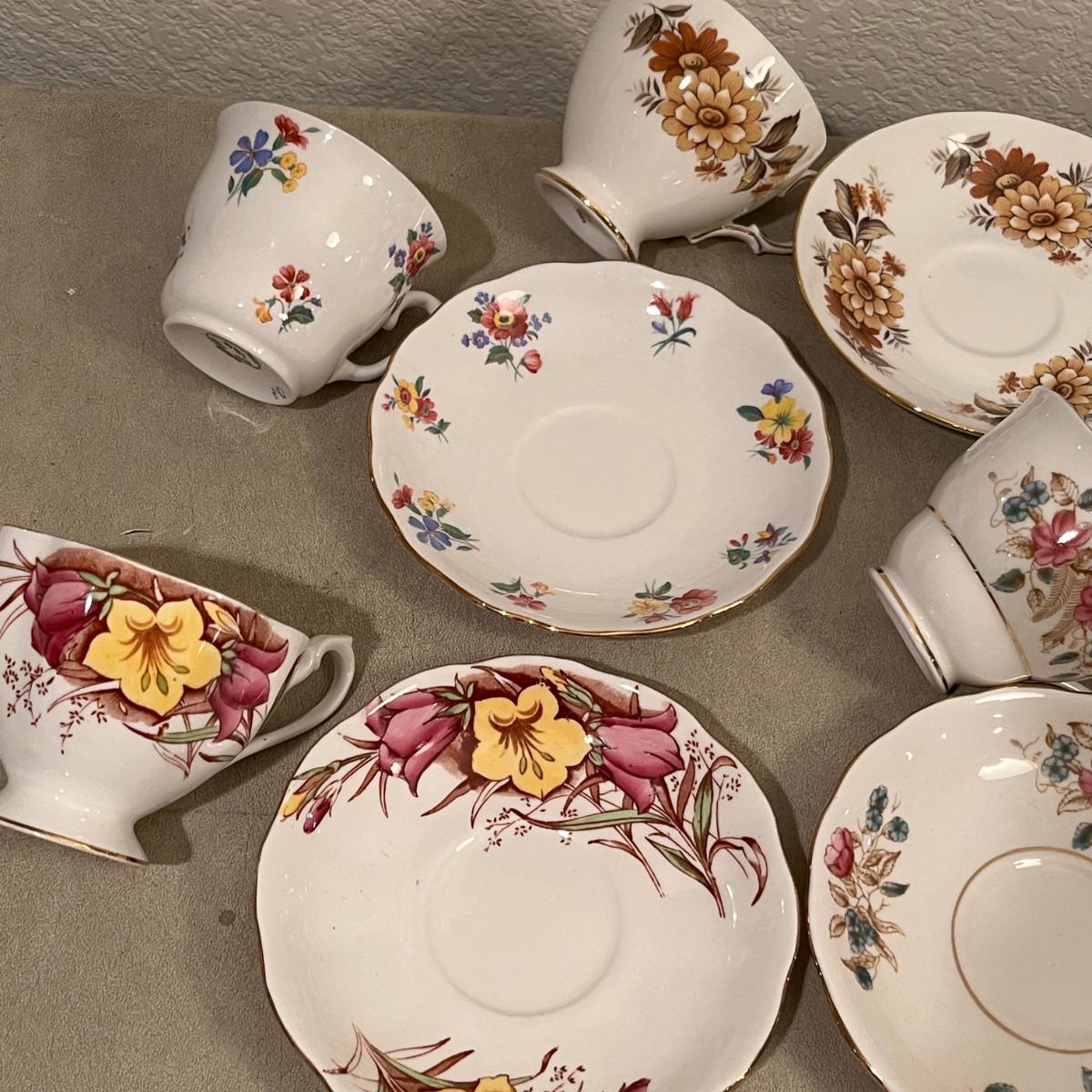 Lot of 6 Bone China Cups & Saucers