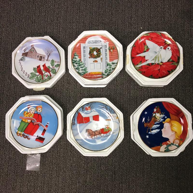 Lot six holiday plates from the Franklin mint. All the plates are in exceptional condition and include their styrofoam caddies; see pictures.