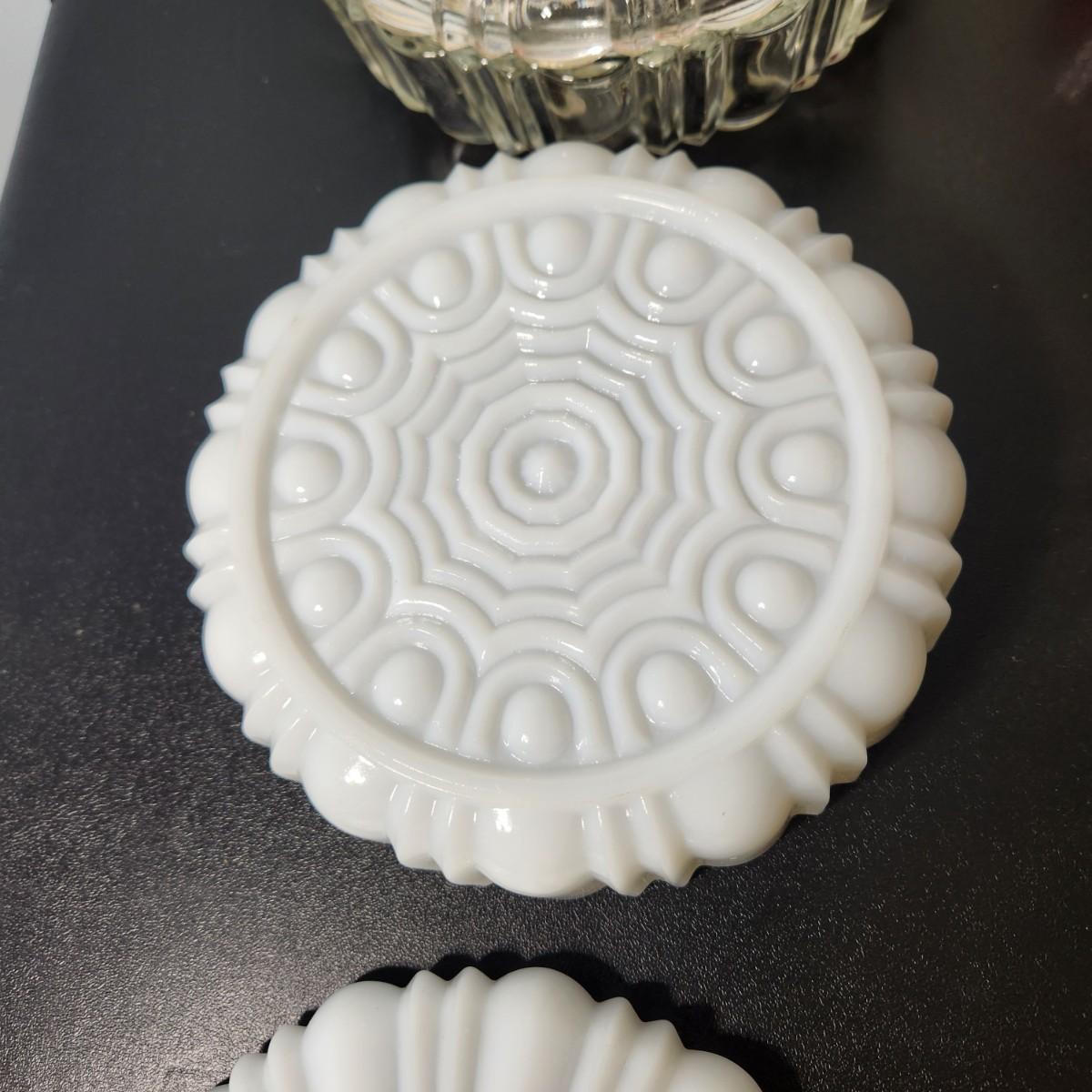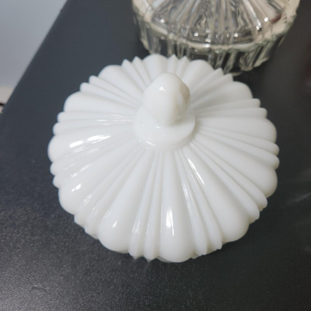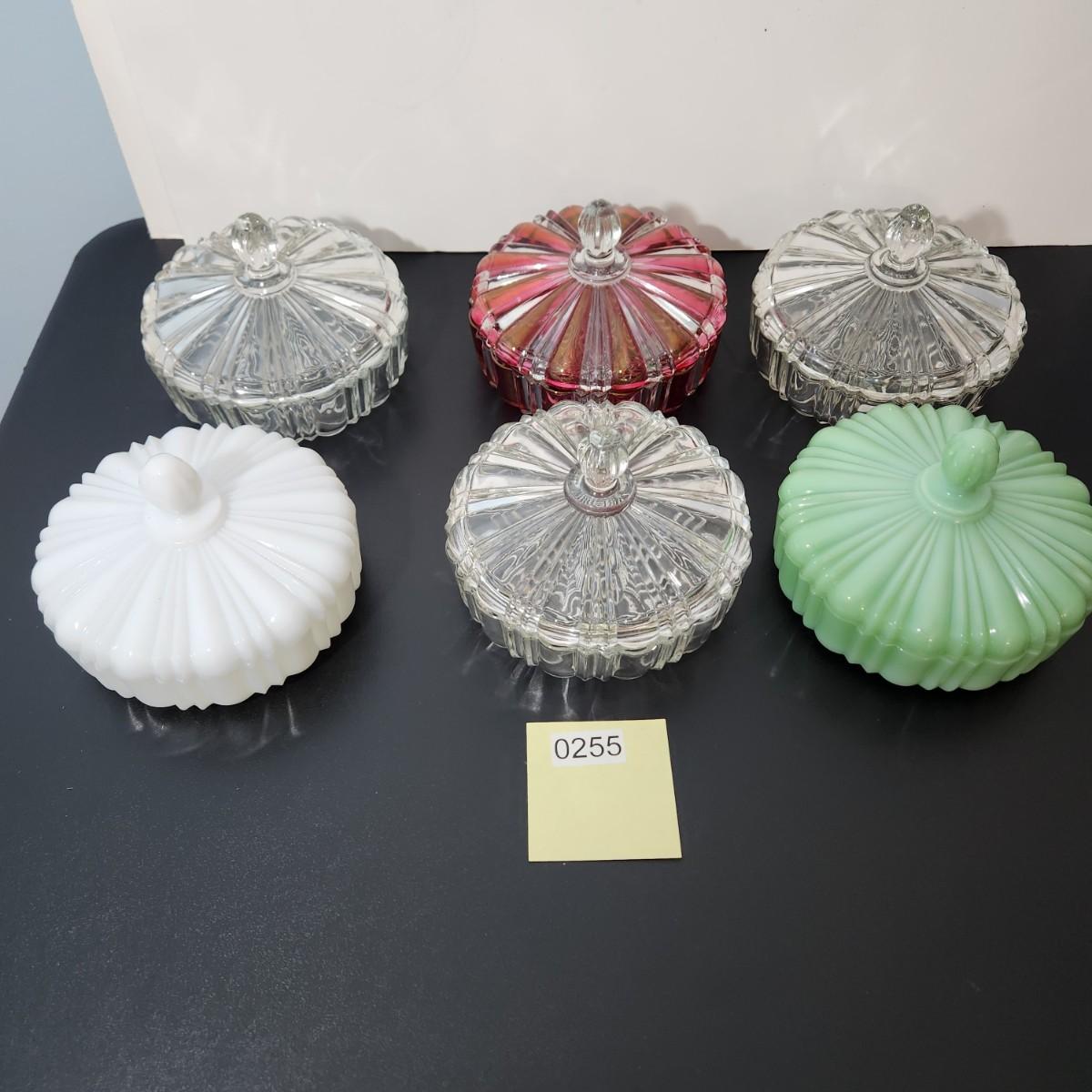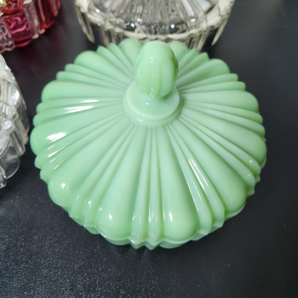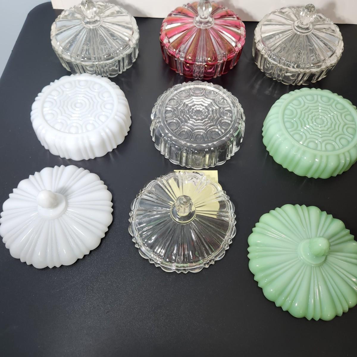 lot of 6 Glass Covered Dishes Milk Glass Jadeite Green