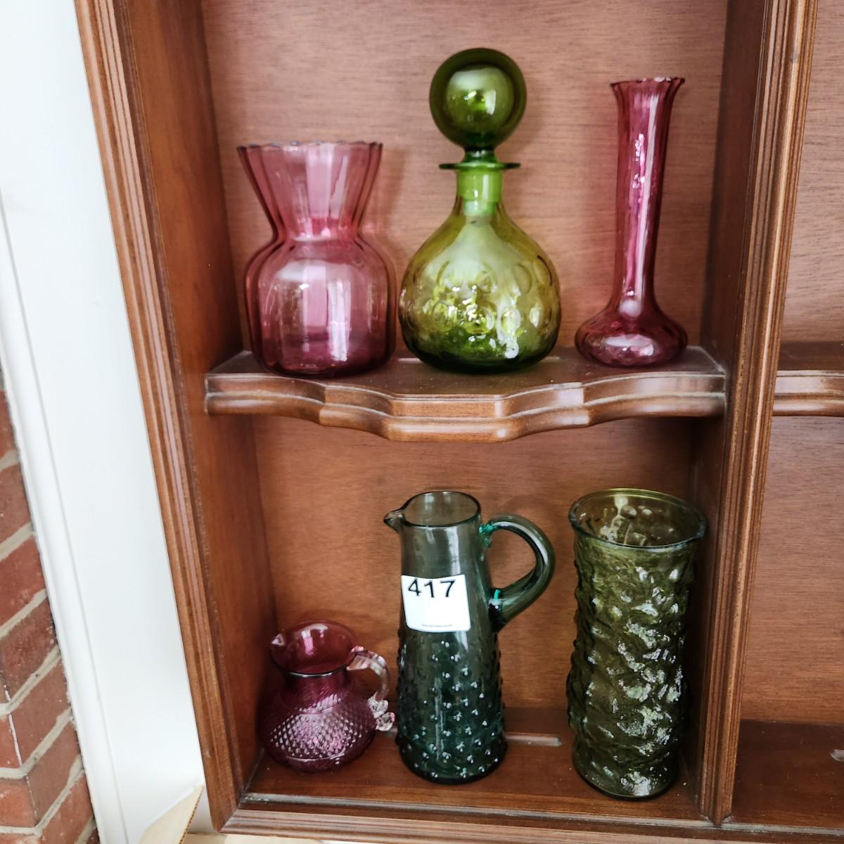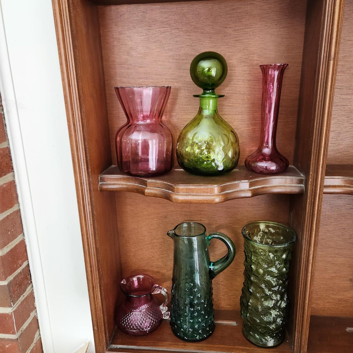 Lot of 6 Glass Pitchers, Decanters, Vases