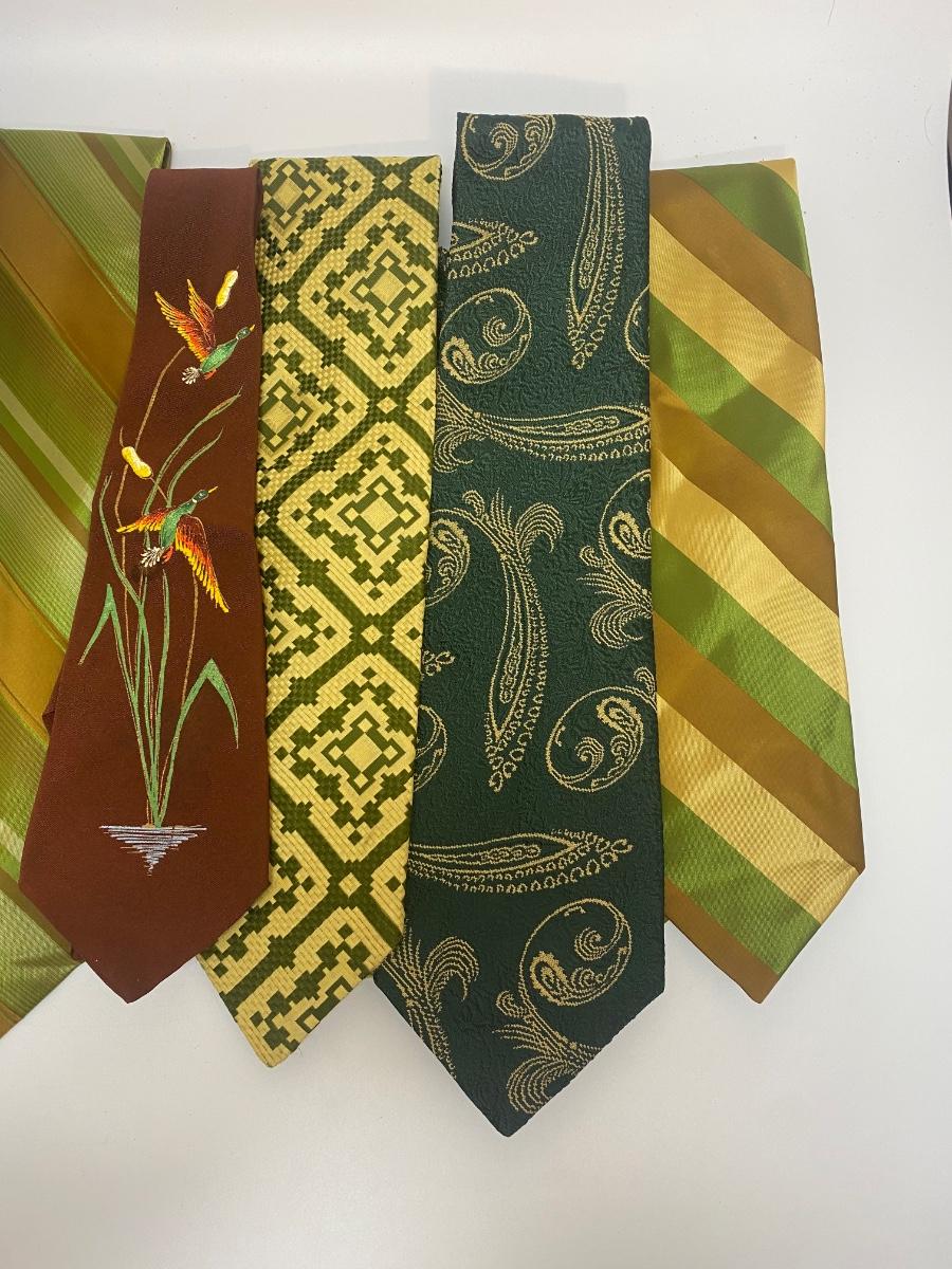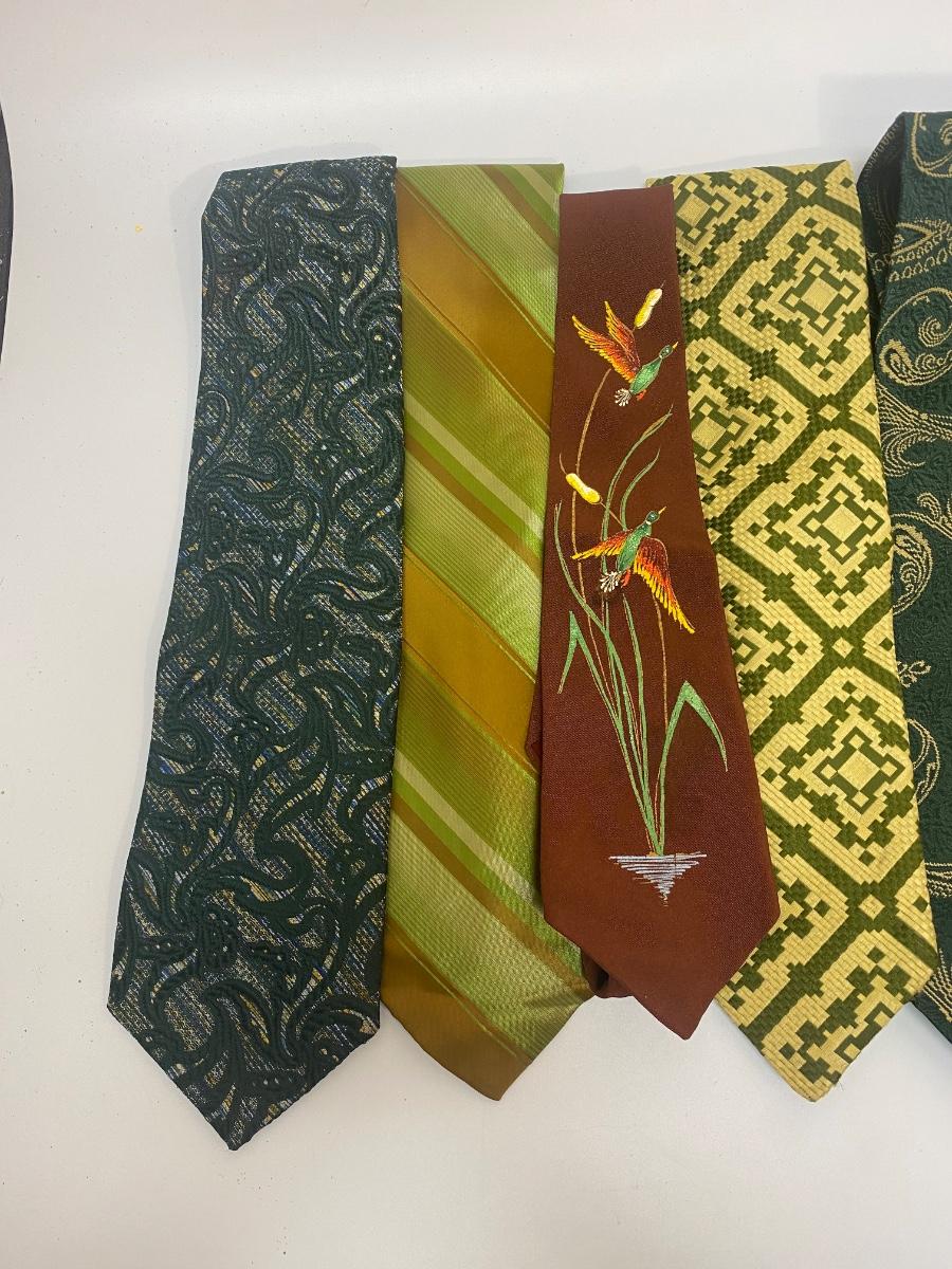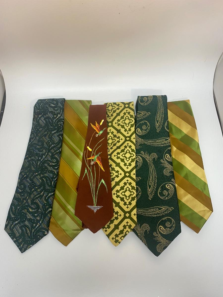 Lot of 6 Green & Gold Theme Funky Retro Vintage Neck Ties