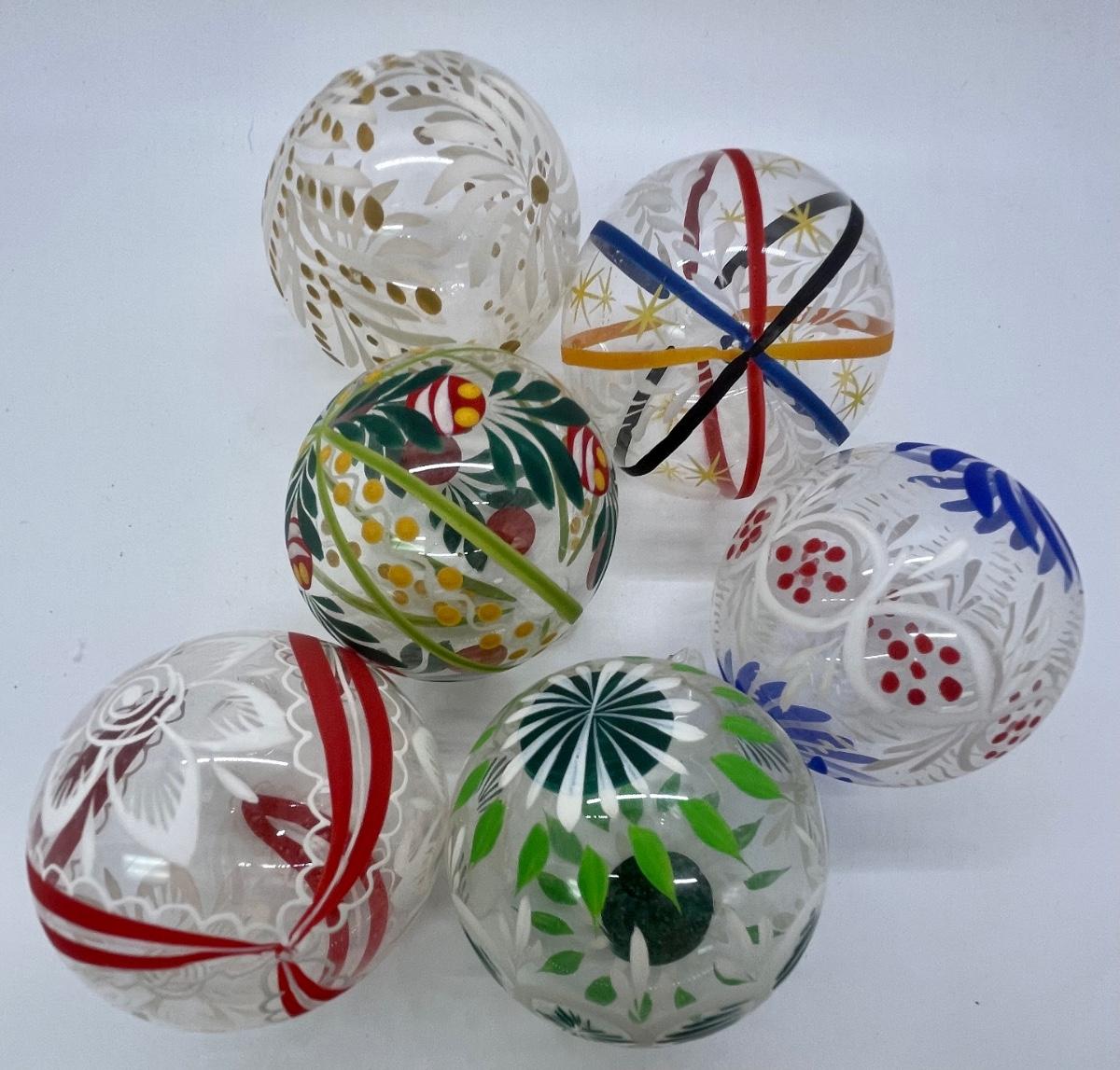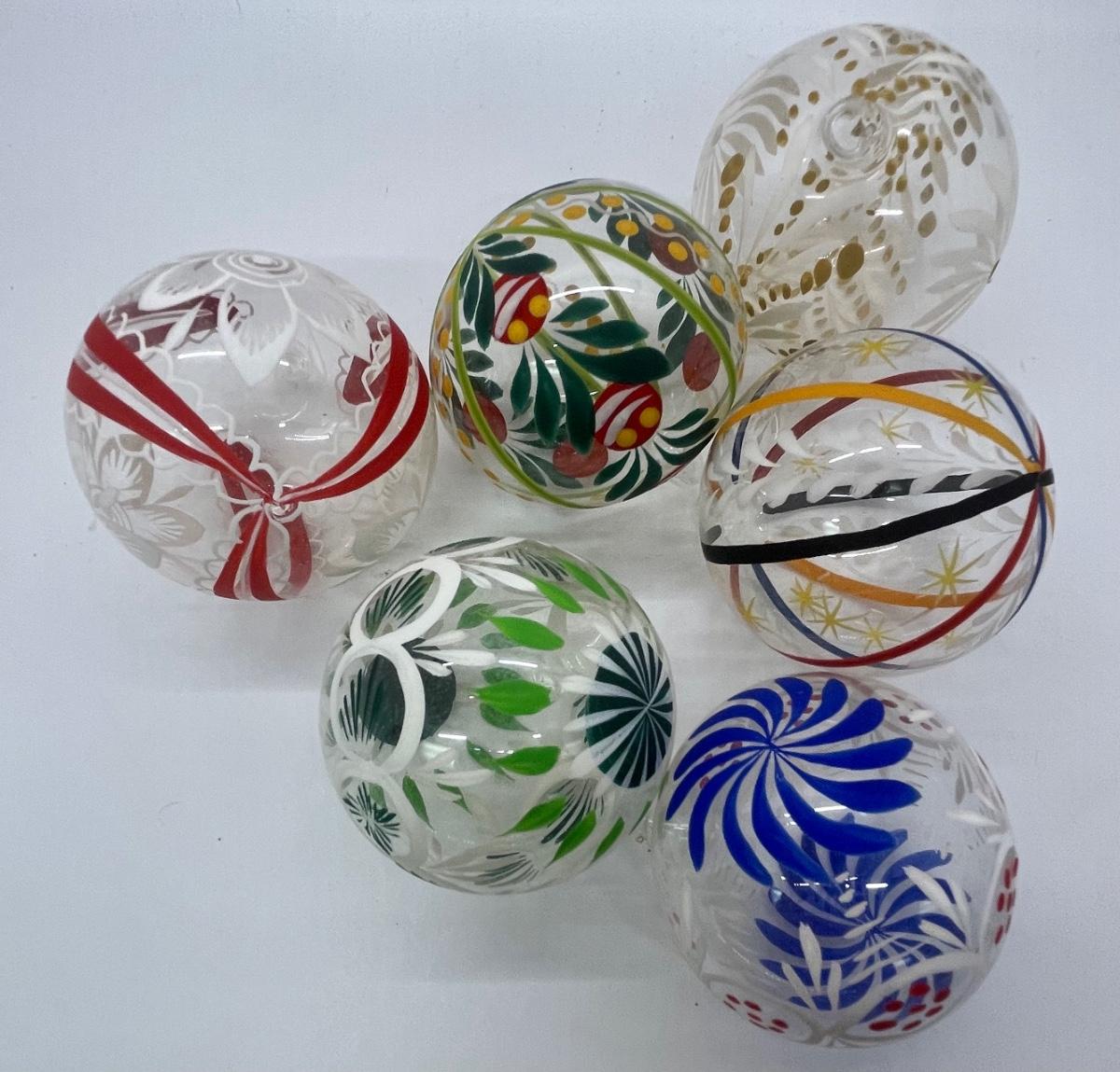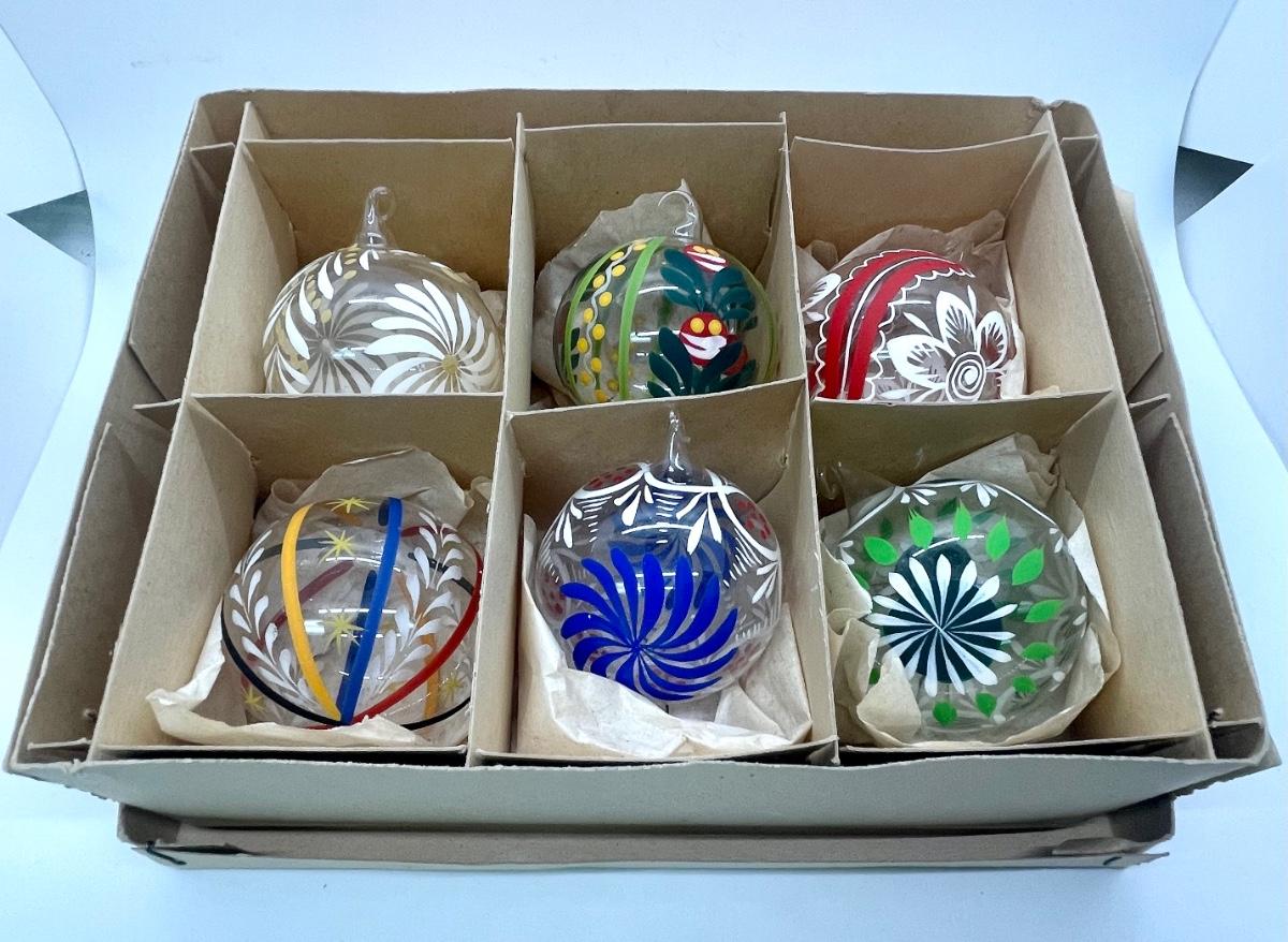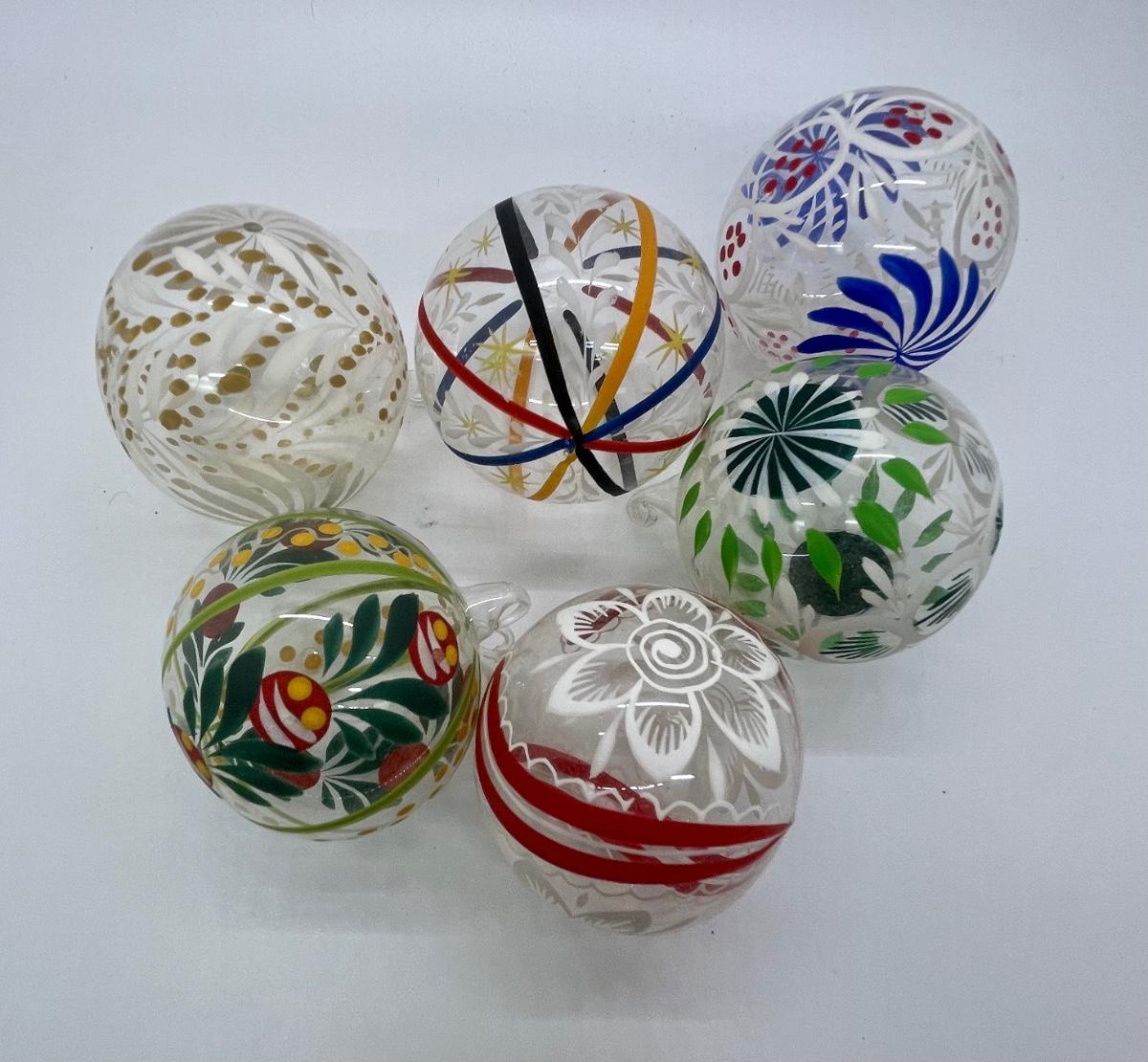 Lot of 6 Hand Painted Blown Glass Ornaments in Box