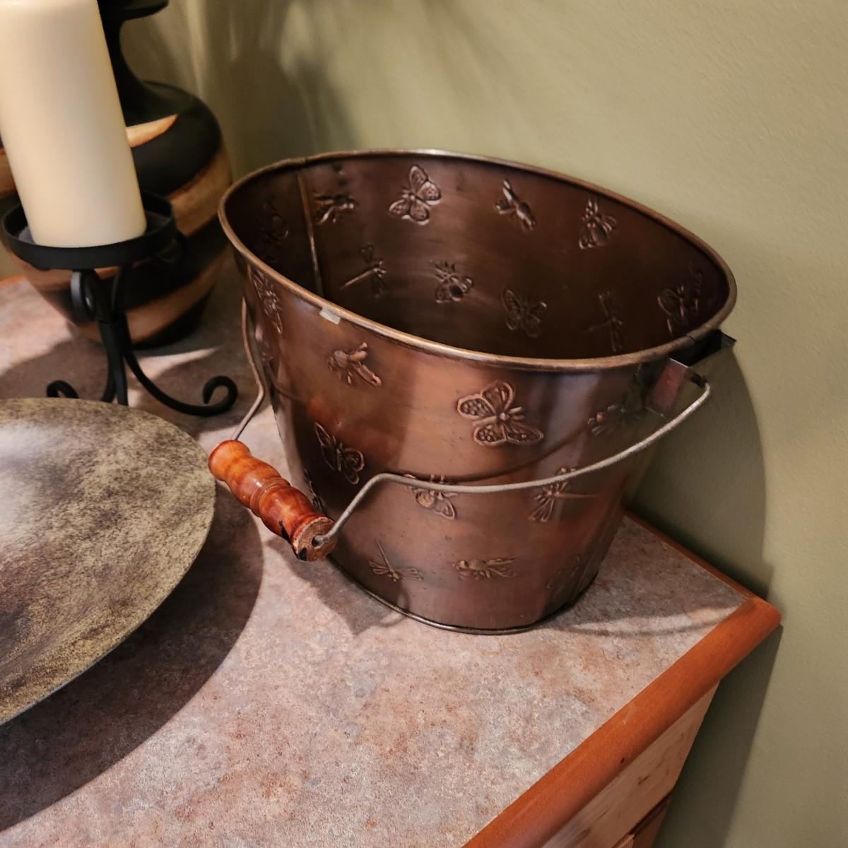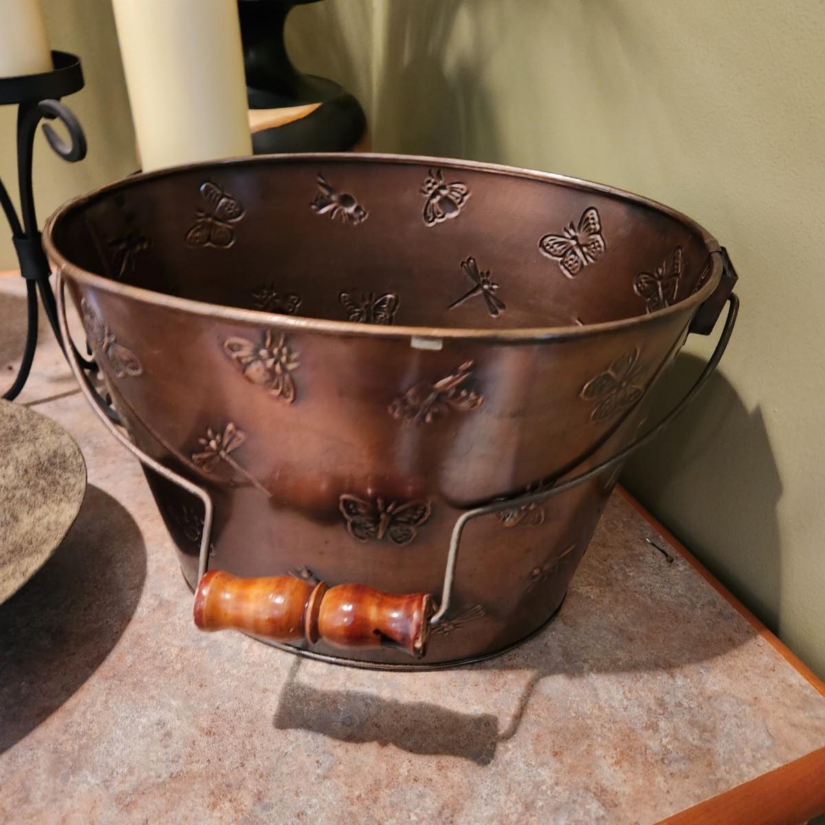 Lot of 6 Home Decor Lot Candle Holders Heavy Metal Bowl, Bucket, 2 Plant Vases