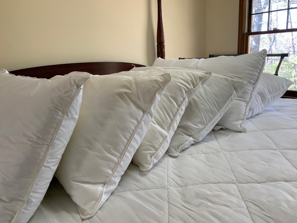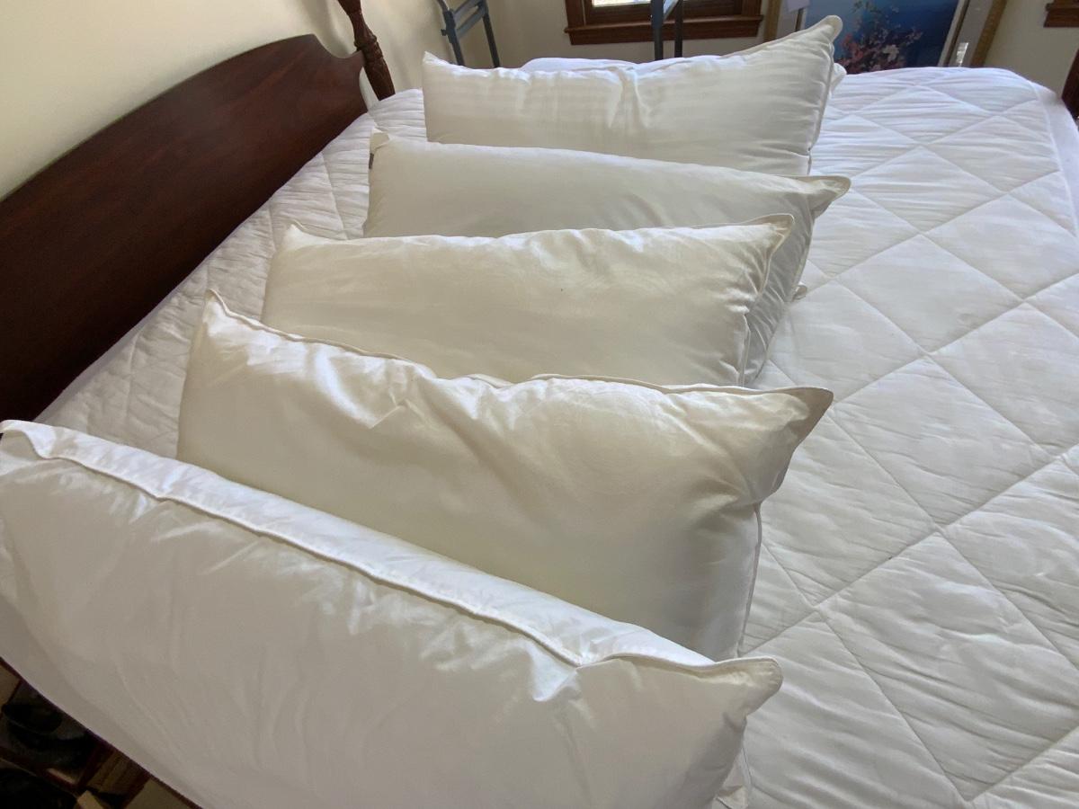 Lot of 6 king size quality Bed Pillows. Brands include Linen Source and others.