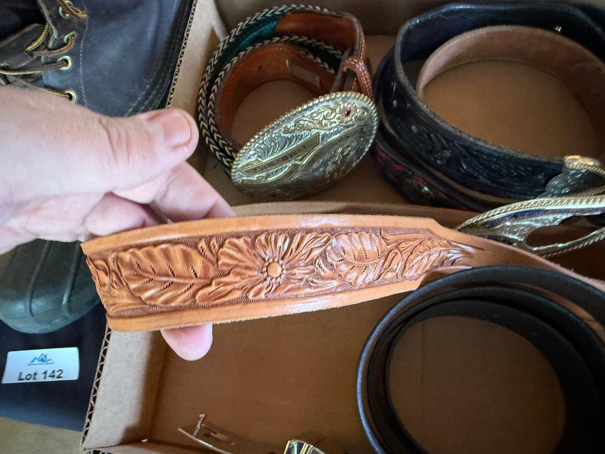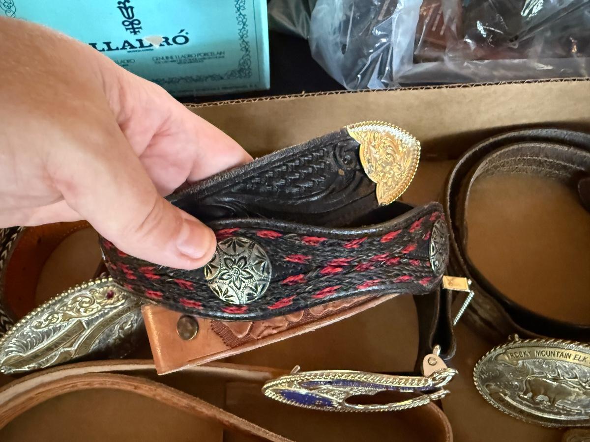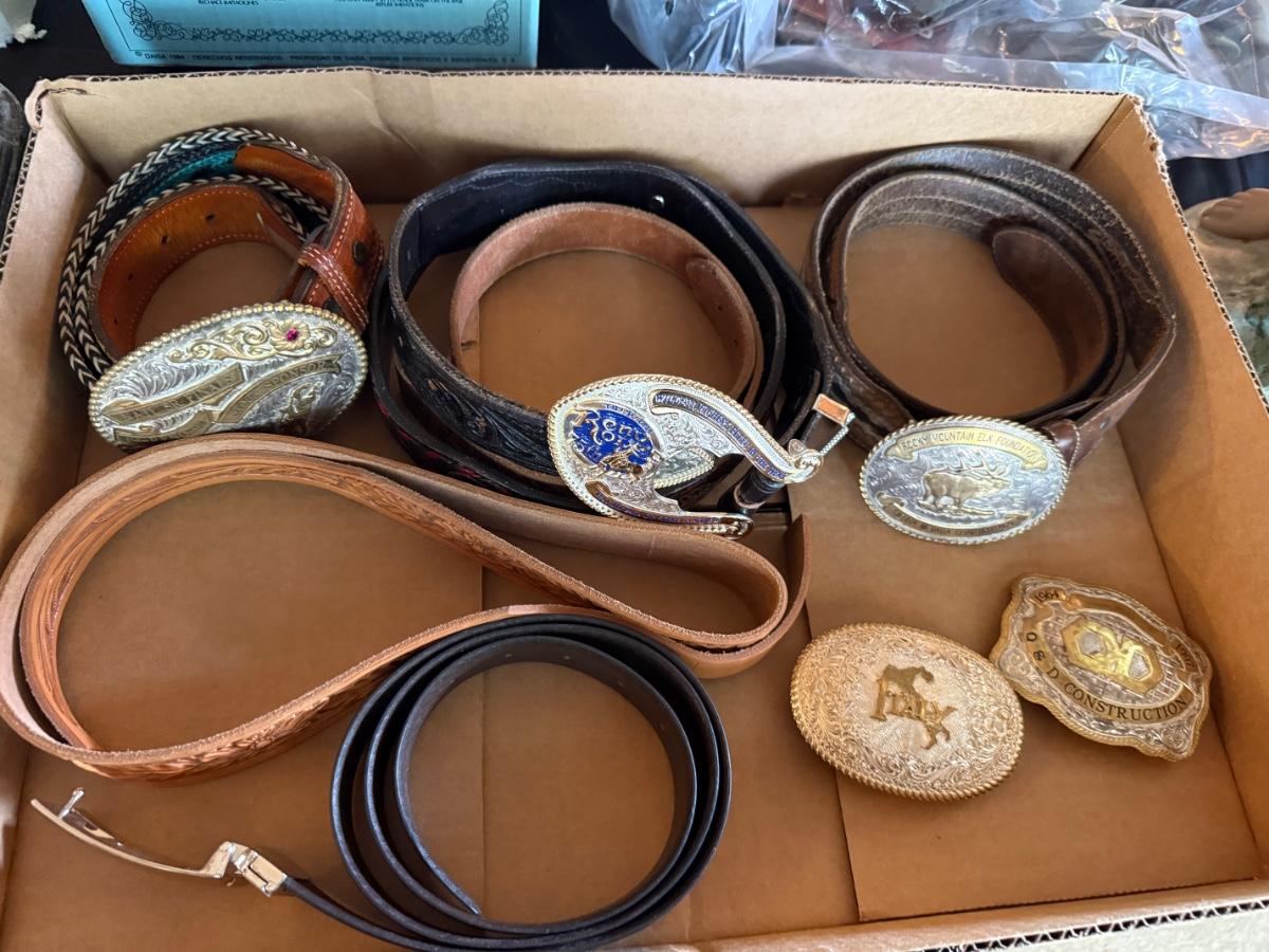 Lot of 6 Leather Belts and 6 Buckles