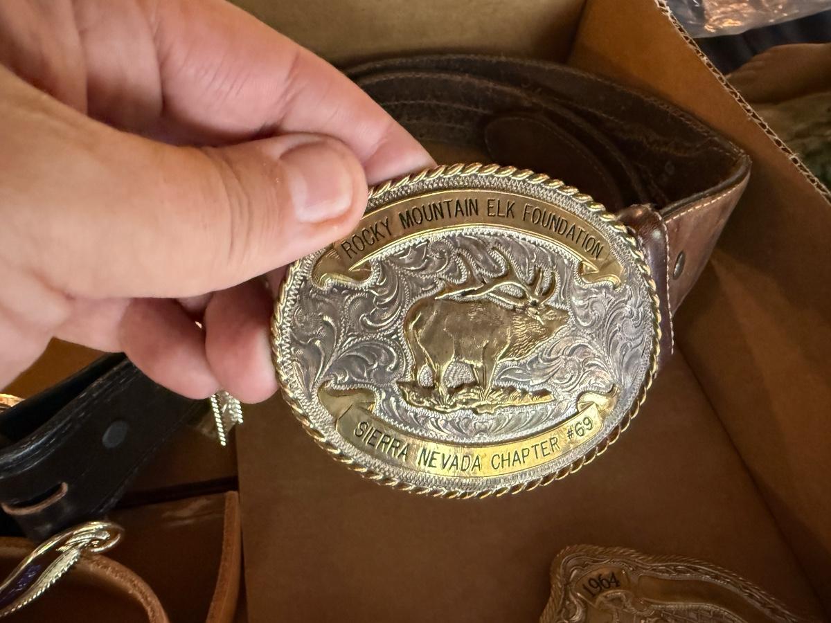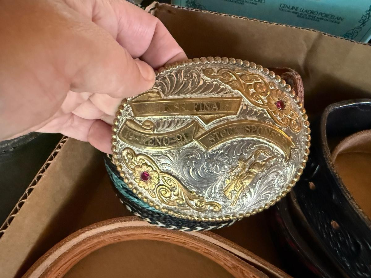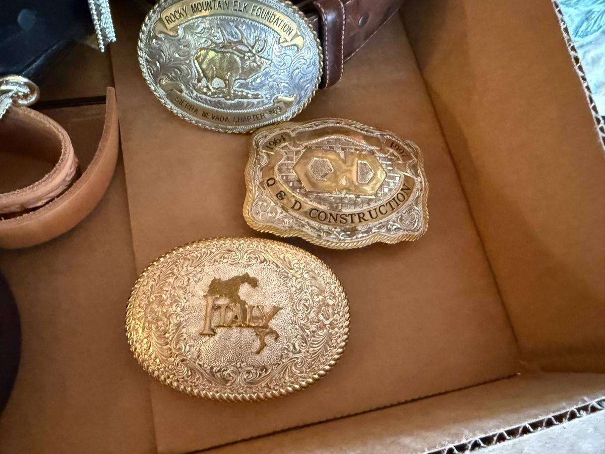 Lot of 6 Leather Belts and 6 Buckles