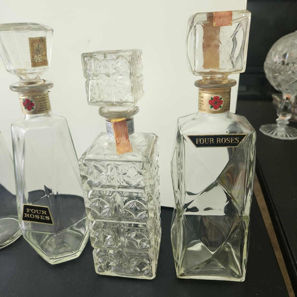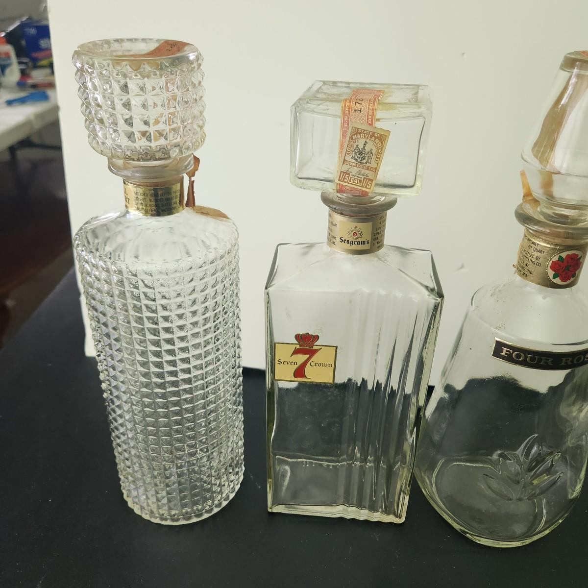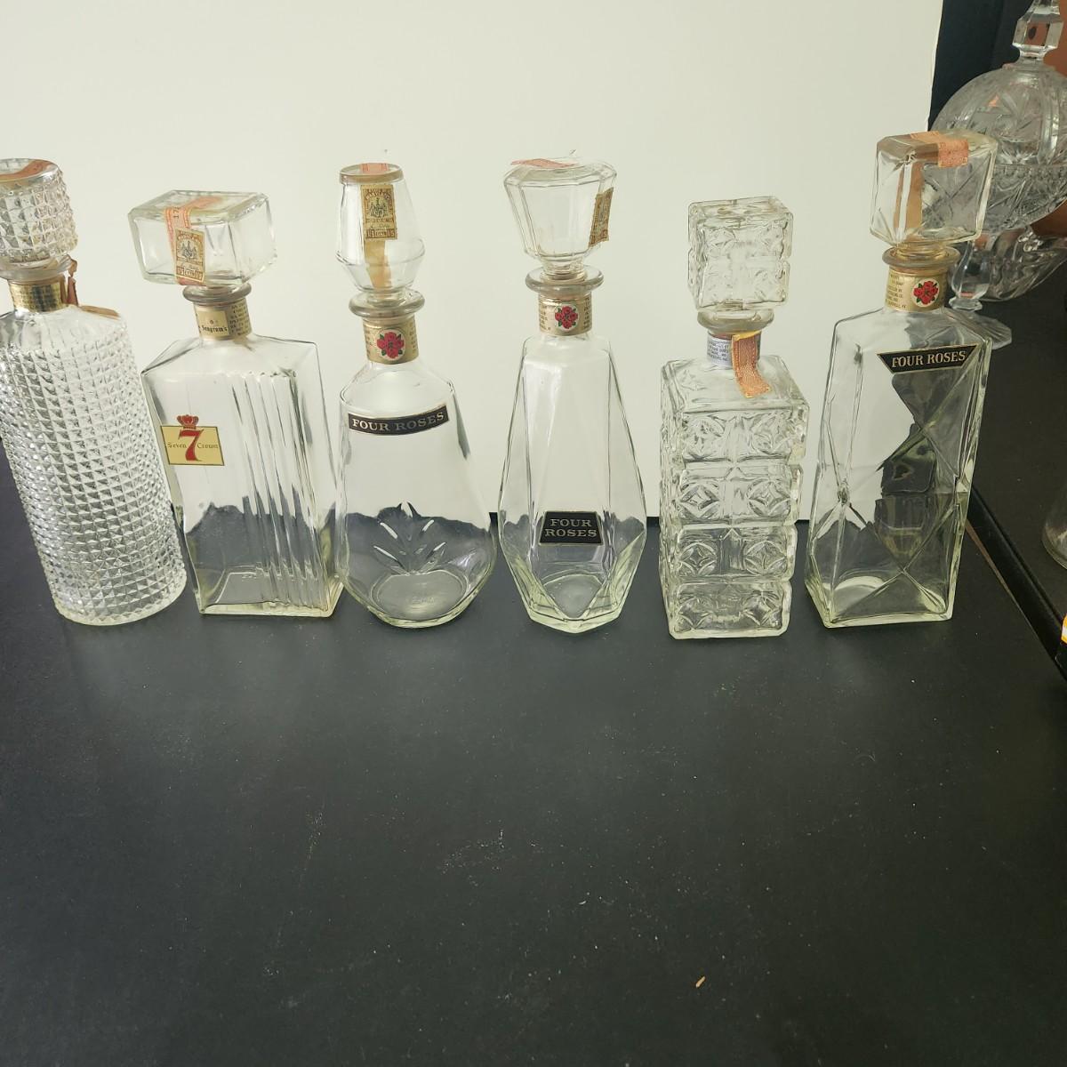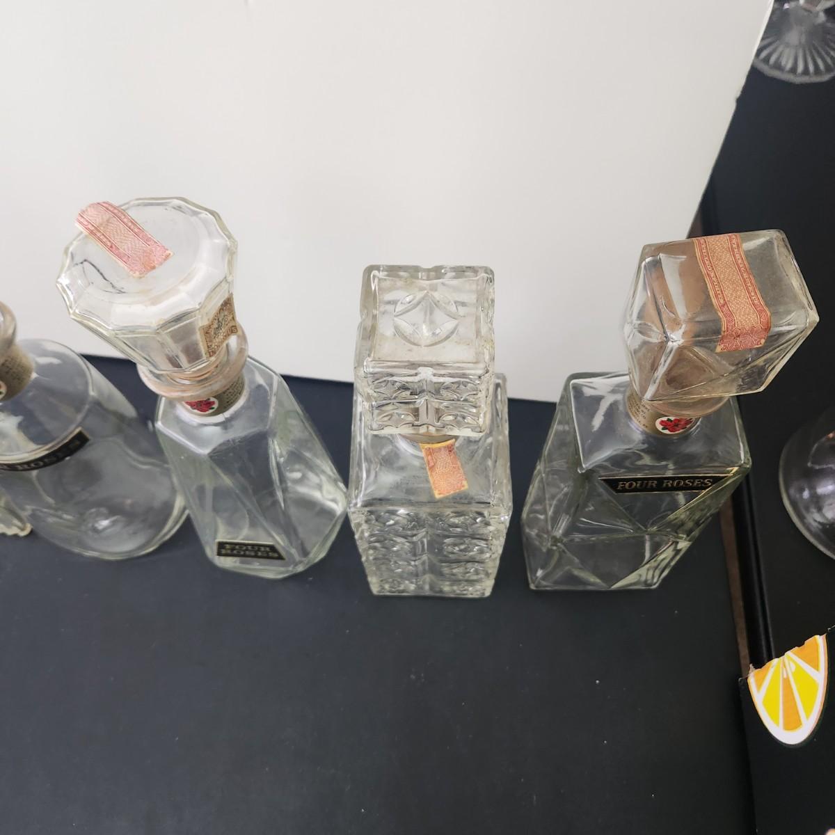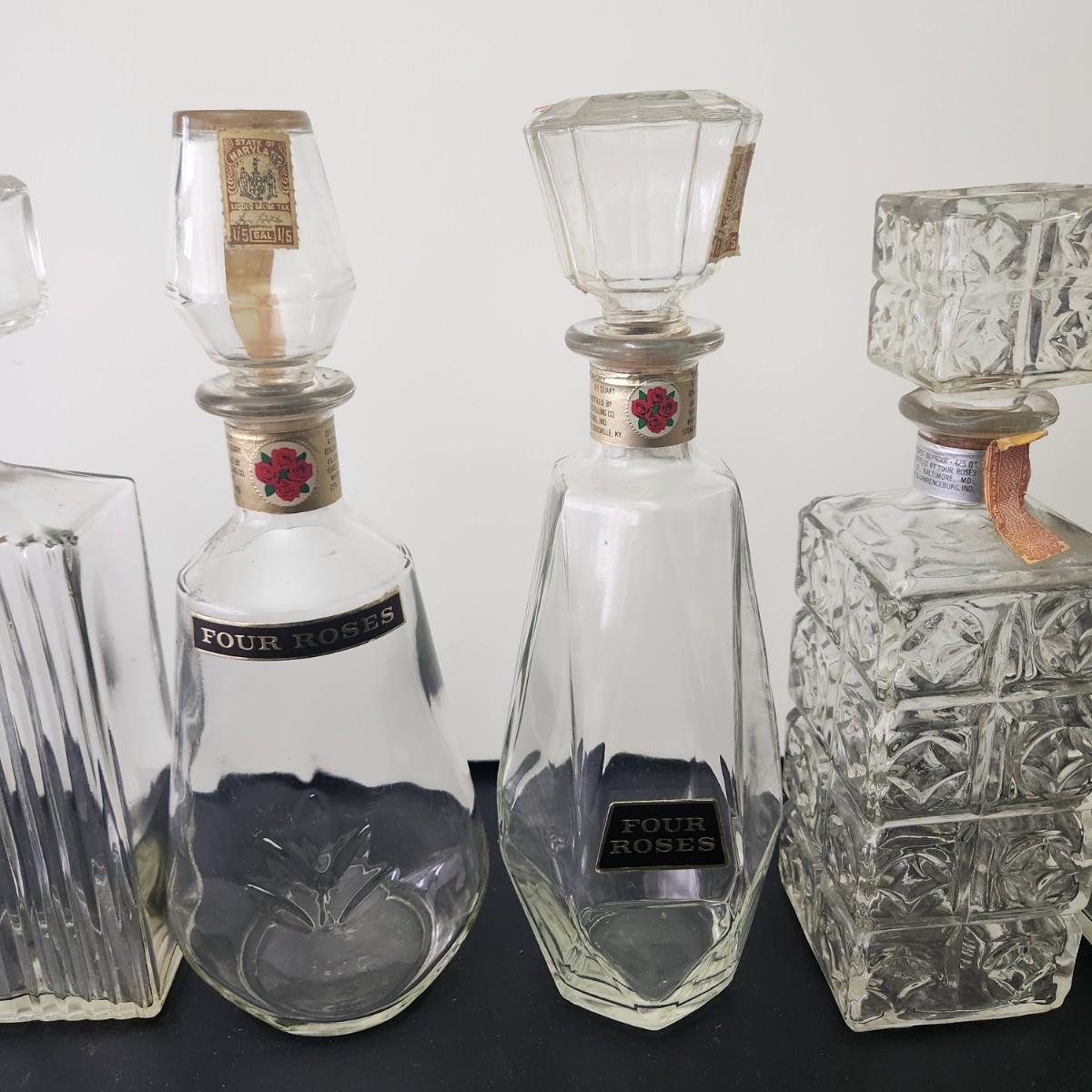 Lot of 6 Mid Century Whiskey Bottle Glass Decanters  Barware